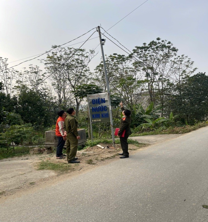 Lực lượng chức năng khảo sát camera an ninh trên địa bàn xã