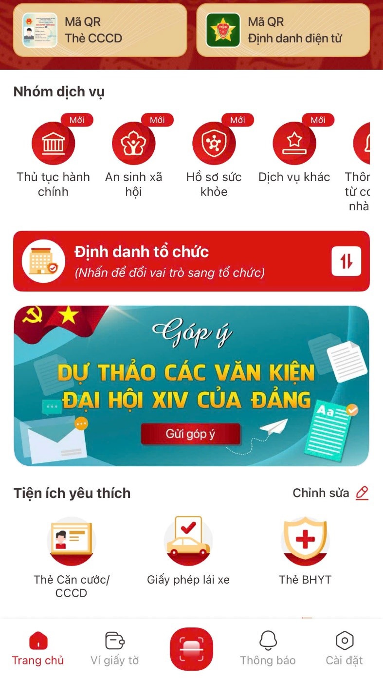 Mục góp ý Dự thảo các Văn kiện Đại hội XIV của Đảng trên ứng dụng VNeID
