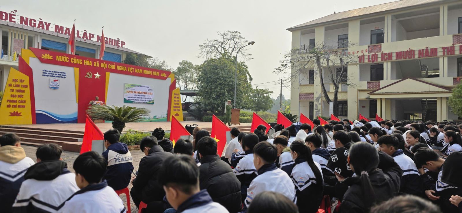 Ngày 12/01/2026, Chi đoàn Công an xã Yên Lập phối hợp với Đoàn Thanh niên Trung tâm Giáo dục nghề nghiệp – Giáo dục thường xuyên Yên Lập tổ chức buổi tuyên truyền, phổ biến pháp luật cho cán bộ, giáo viên và học sinh nhà trường. Nội dung tuyên truyền tập trung vào các vấn đề đang được xã hội quan tâm và có nguy cơ tác động trực tiếp đến thanh thiếu niên hiện nay như: phòng, chống đánh bạc qua mạng internet; thanh thiếu niên vi phạm pháp luật; phòng, chống mua bán, tàng trữ, vận chuyển và sử dụng trái phép pháo nổ.