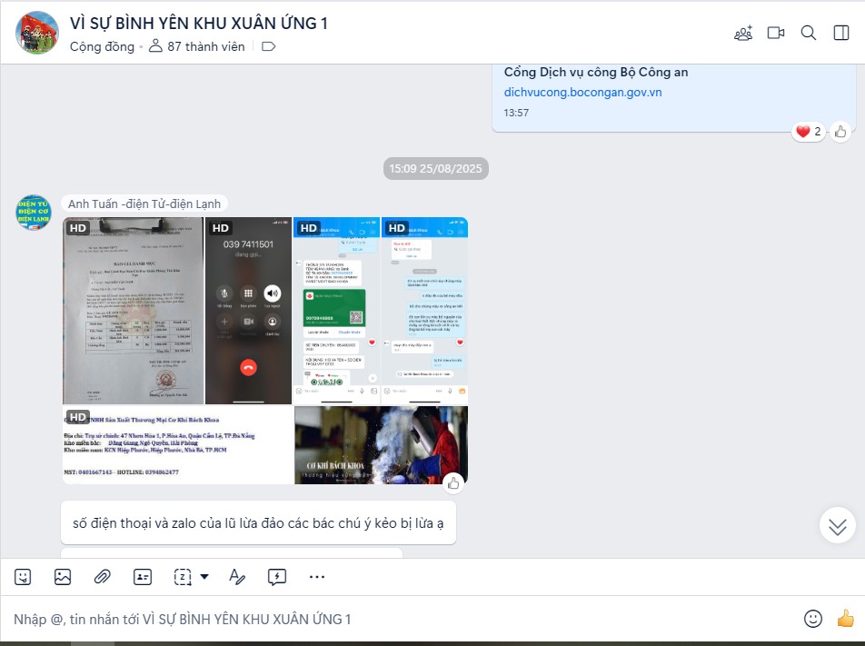 Nhóm Zalo không chỉ là kênh thông tin một chiều mà còn là diễn đàn trao đổi hai chiều giữa lực lượng Công an và người dân. Các ý kiến phản ánh về tình hình ANTT, mâu thuẫn phát sinh trong khu dân cư, dấu hiệu nghi vấn liên quan đến tội phạm… được người dân cung cấp kịp thời, giúp lực lượng chức năng nắm bắt tình hình từ sớm, từ xa.