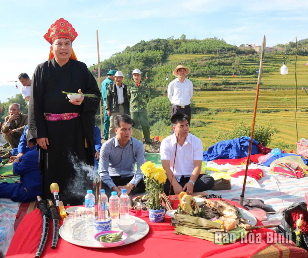Nghệ nhân Bùi Văn Minh thực hiện các nghi lễ của dân tộc Mường