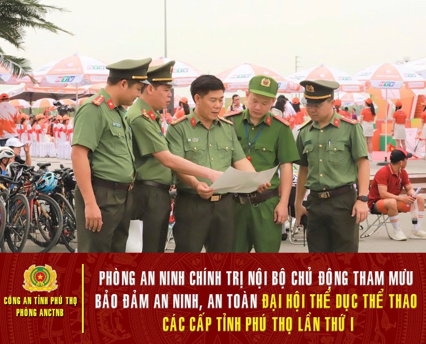 Với tinh thần chủ động, trách nhiệm, Phòng An ninh chính trị nội bộ tiếp tục phối hợp cùng các đơn vị trong Công an tỉnh triển khai đồng bộ các biện pháp nghiệp vụ, góp phần bảo đảm an ninh, an toàn tuyệt đối cho Đại hội Thể dục thể thao các cấp tỉnh Phú Thọ lần thứ I; qua đó góp phần vào thành công chung của Đại hội và công tác chuẩn bị tham gia Đại hội Thể thao toàn quốc lần thứ X năm 2026.