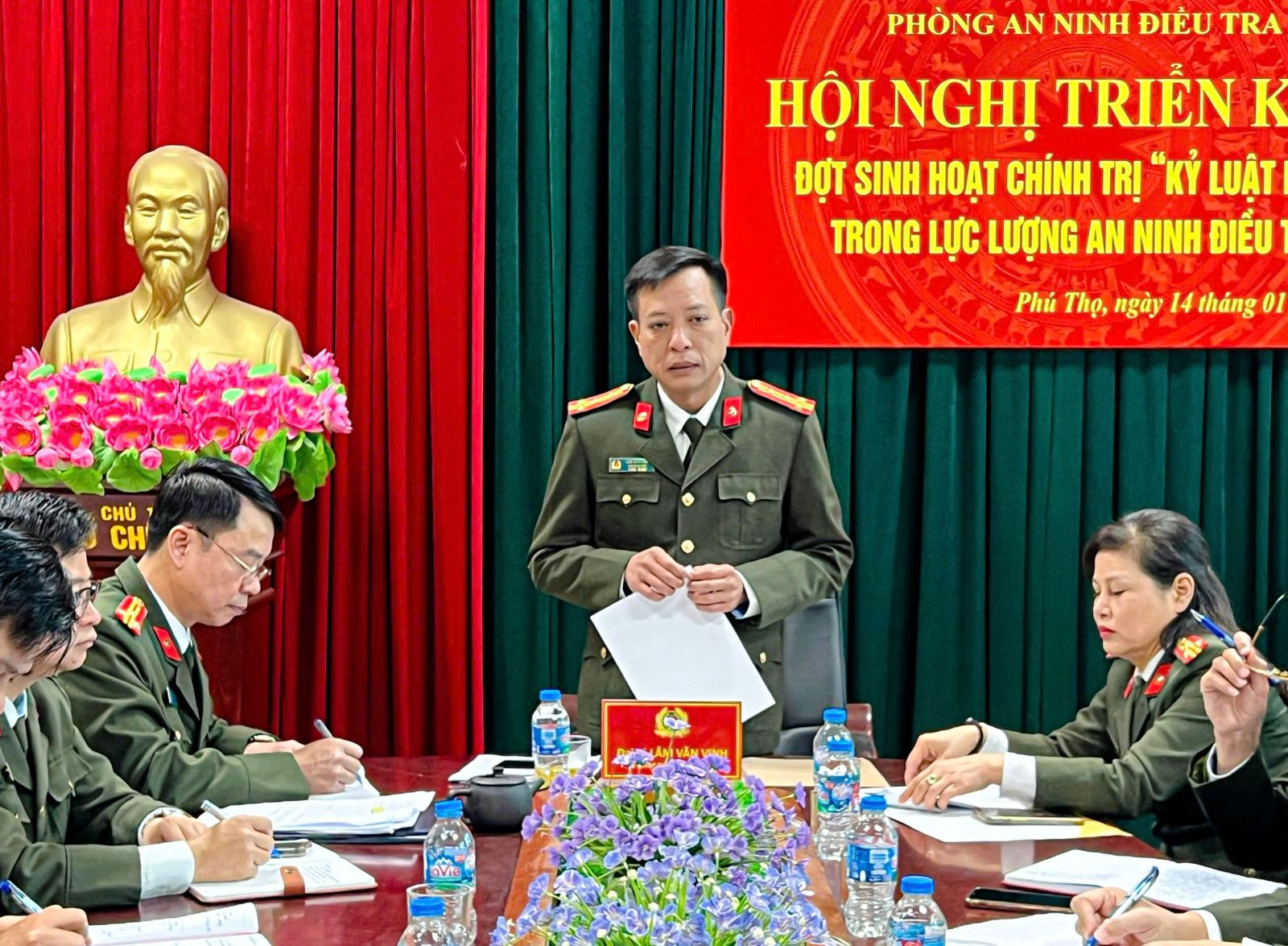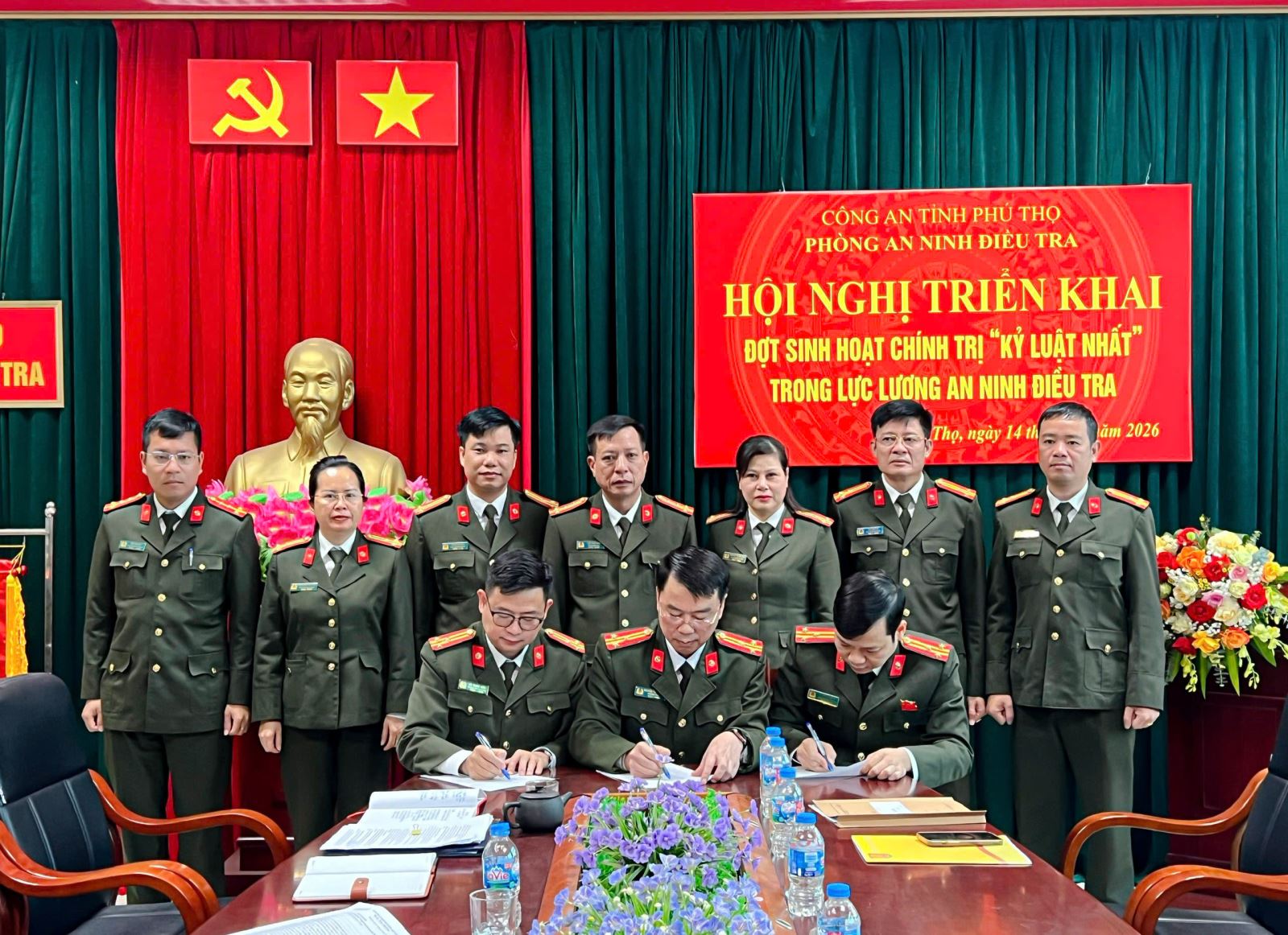 Thực hiện Kế hoạch của Công an tỉnh Phú Thọ về tổ chức phong trào thi đua “Ba nhất: Kỷ luật nhất - Trung thành nhất - Gần dân nhất”, sáng 14/01/2026, Phòng An ninh điều tra Công an tỉnh Phú Thọ tổ chức đợt sinh hoạt chính trị với chủ đề “Kỷ luật nhất” nhằm tăng cường kỷ luật, kỷ cương trong thực hiện nhiệm vụ chuyên môn.