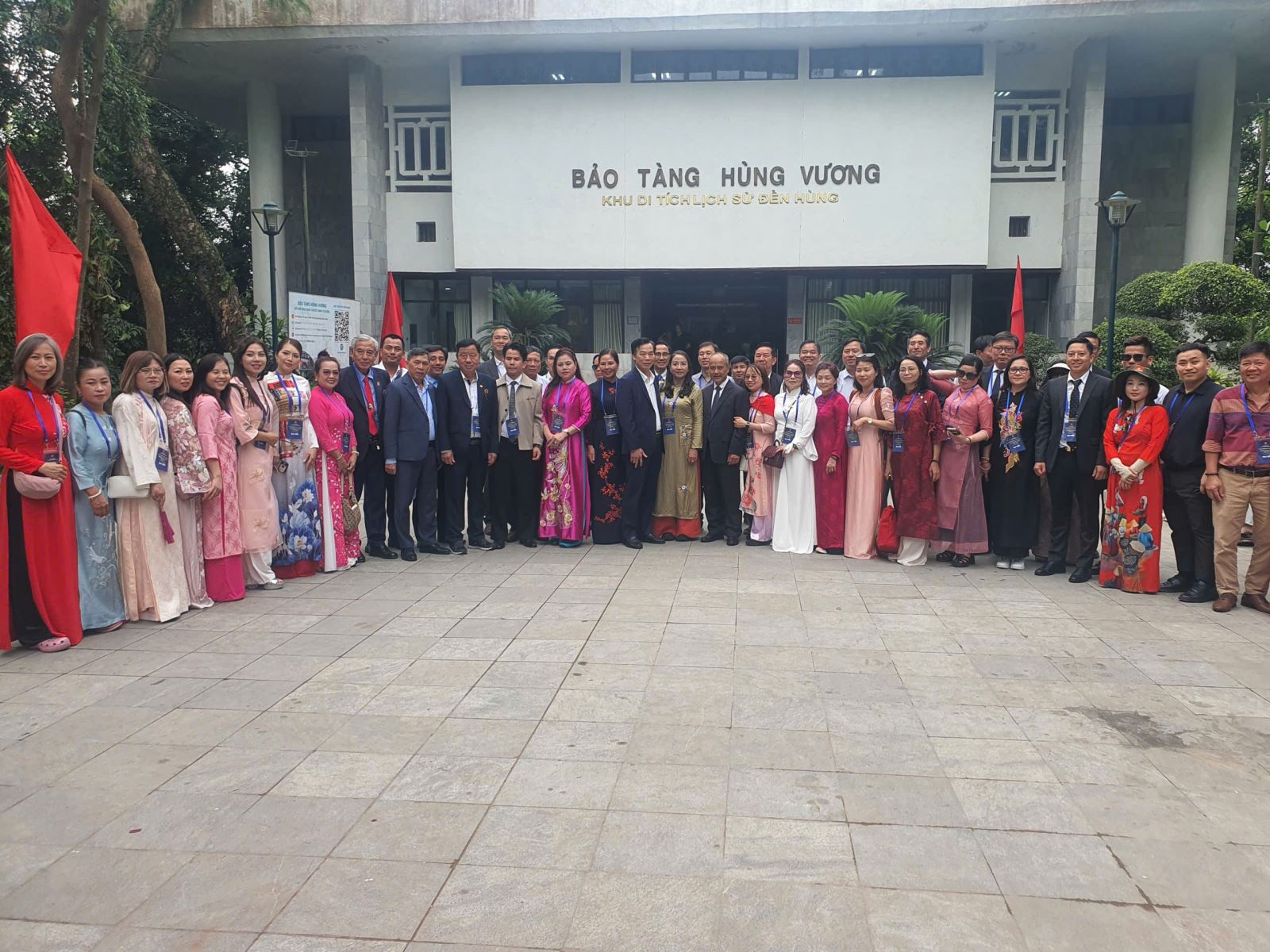 Đoàn Kiều bào chụp ảnh lưu niệm tại Bảo tàng Hùng Vương (Khu di tích lịch sử Đền Hùng)