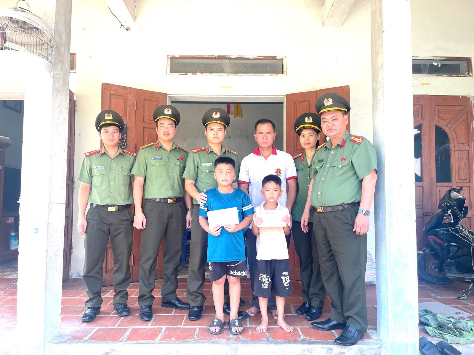 Đại diện đoàn công tác có Thượng tá Bùi Văn Khánh - Phó Trưởng phòng cùng cán bộ, chiến sĩ trong đơn vị đã trực tiếp trao tặng các phần quà gồm sách vở, đồ dùng học tập trị giá 01 triệu đồng và 02 triệu đồng tiền mặt, với mong muốn động viên, tiếp thêm nghị lực để các cháu vươn lên trong học tập, rèn luyện tốt.