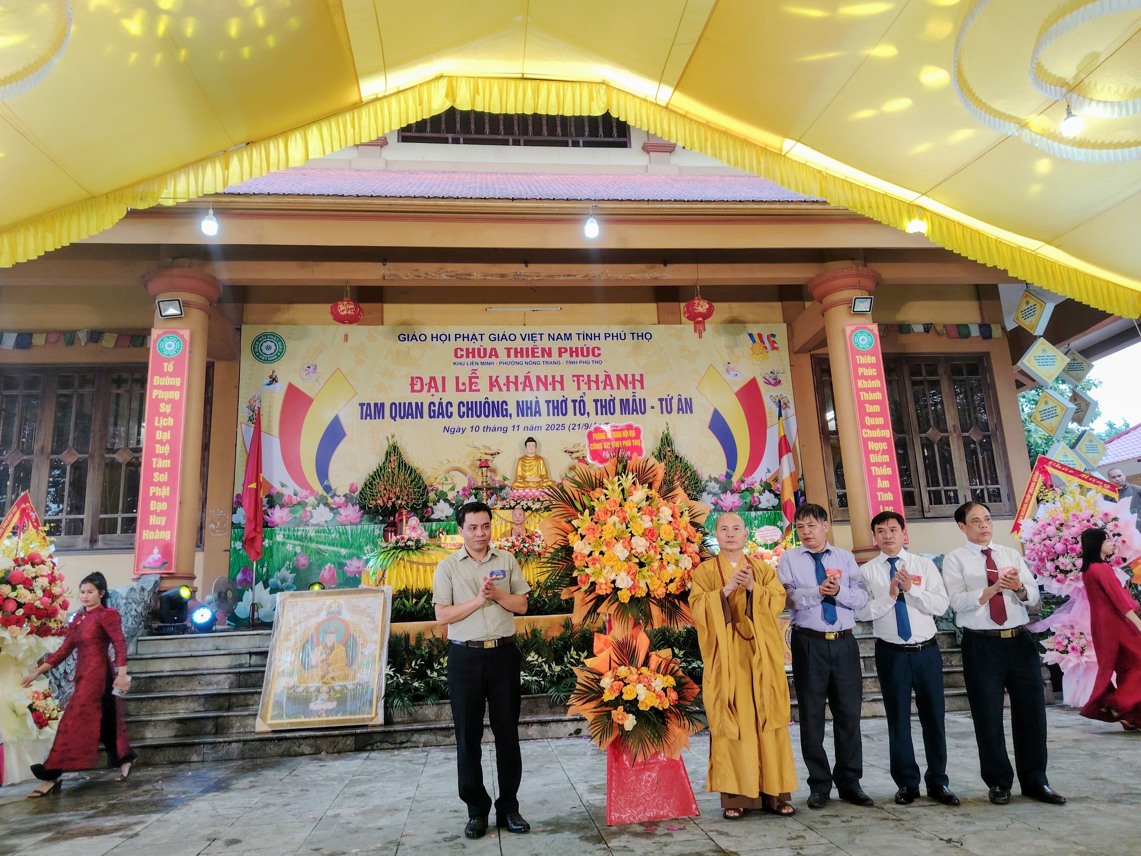 Phòng An ninh nội địa chúc mừng lễ khánh thành Nhà Tổ, Nhà Mẫu, Tứ Ân tại chùa Thiên Phúc (14/11/2025)