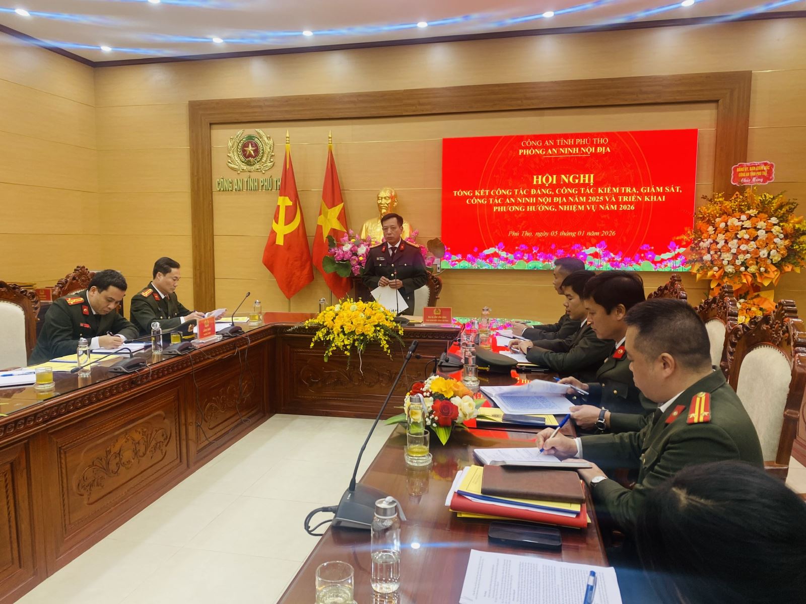 Ngày 05/01/2026, Phòng An ninh nội địa, Công an tỉnh Phú Thọ tổ chức công tác Đảng, công tác năm 2025 và triển khai nhiệm vụ công tác năm 2026. Dự và chỉ đạo Hội nghị có đồng chí Đại tá Lâm Văn Vinh, Ủy viên Ban Thường vụ Đảng ủy, Phó Giám đốc Công an tỉnh Phú Thọ; cùng dự có đại diện lãnh đạo các phòng chức năng và toàn thể cán bộ, chiến sĩ Phòng An ninh nội địa.
