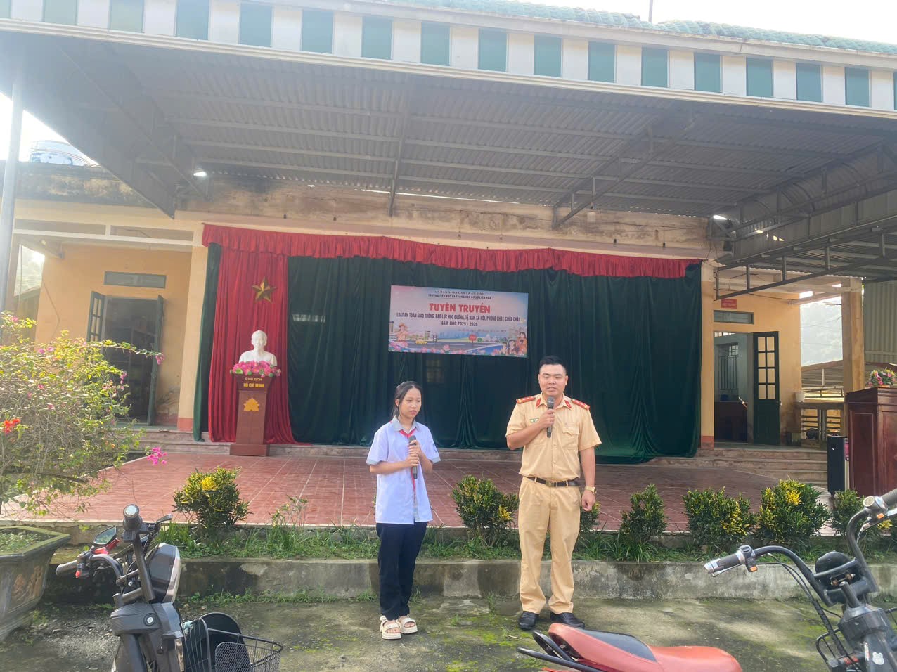 Nhằm nâng cao ý thức chấp hành pháp luật và xây dựng môi trường học đường an toàn, ngày 09/10/2025 tại Trường Tiểu học và Trung học cơ sở Liên Hòa, xã An Bình, tỉnh Phú Thọ, Phòng Cảnh sát giao thông và Công an xã An Bình – tỉnh Phú Thọ phối hợp với Ban Giám hiệu nhà trường tổ chức buổi hoạt động ngoại khóa Tuyên truyền Luật an toàn giao thông, phòng chống bạo lực học đường, phòng chống xâm hại tình dục trẻ em và phòng cháy, chữa cháy. Hoạt động ngoại khóa có sự tham gia của toàn thể các đồng chí Cán bộ, giáo viên, nhân viên và 243 học sinh của nhà trường
