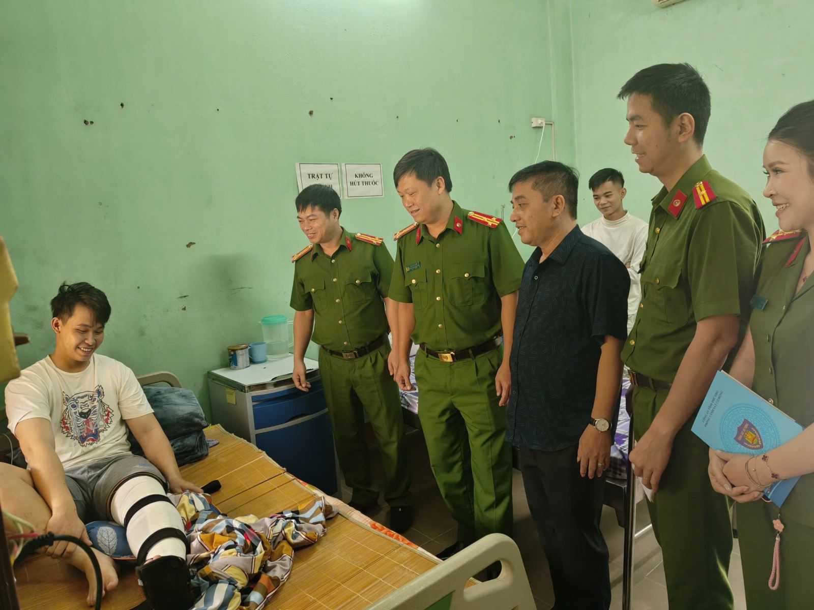 Tại buổi thăm hỏi, đồng chí Trưởng phòng và đoàn công tác đã trực tiếp hỏi thăm tình hình sức khỏe, động viên đồng chí Thiện yên tâm điều trị, sớm bình phục để trở lại công tác. Đồng thời, đoàn ghi nhận tinh thần trách nhiệm và nỗ lực trong quá trình thực hiện nhiệm vụ của đồng chí. Hành động dũng cảm, chủ động của đồng chí Thiện được đánh giá là tấm gương cho các cán bộ, chiến sĩ khác học tập và phát huy trong quá trình công tác.