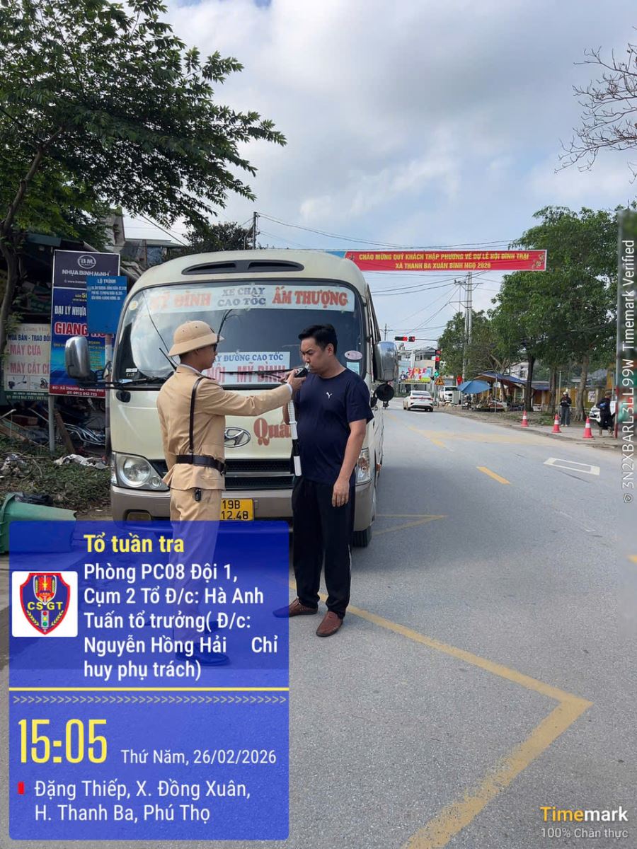 Thực hiện Kế hoạch cao điểm bảo đảm trật tự, an toàn giao thông dịp Tết Nguyên đán, lực lượng Cảnh sát giao thông, Công an tỉnh Phú Thọ tiếp tục duy trì tuần tra, kiểm soát, xử lý vi phạm đến hết ngày 15/3. Công tác tuần tra được triển khai đồng bộ, kết hợp giữa các tổ công tác chuyên đề và lực lượng Công an cấp xã nhằm phát hiện, ngăn chặn vi phạm ngay từ cơ sở, hạn chế nguy cơ xảy ra tai nạn.