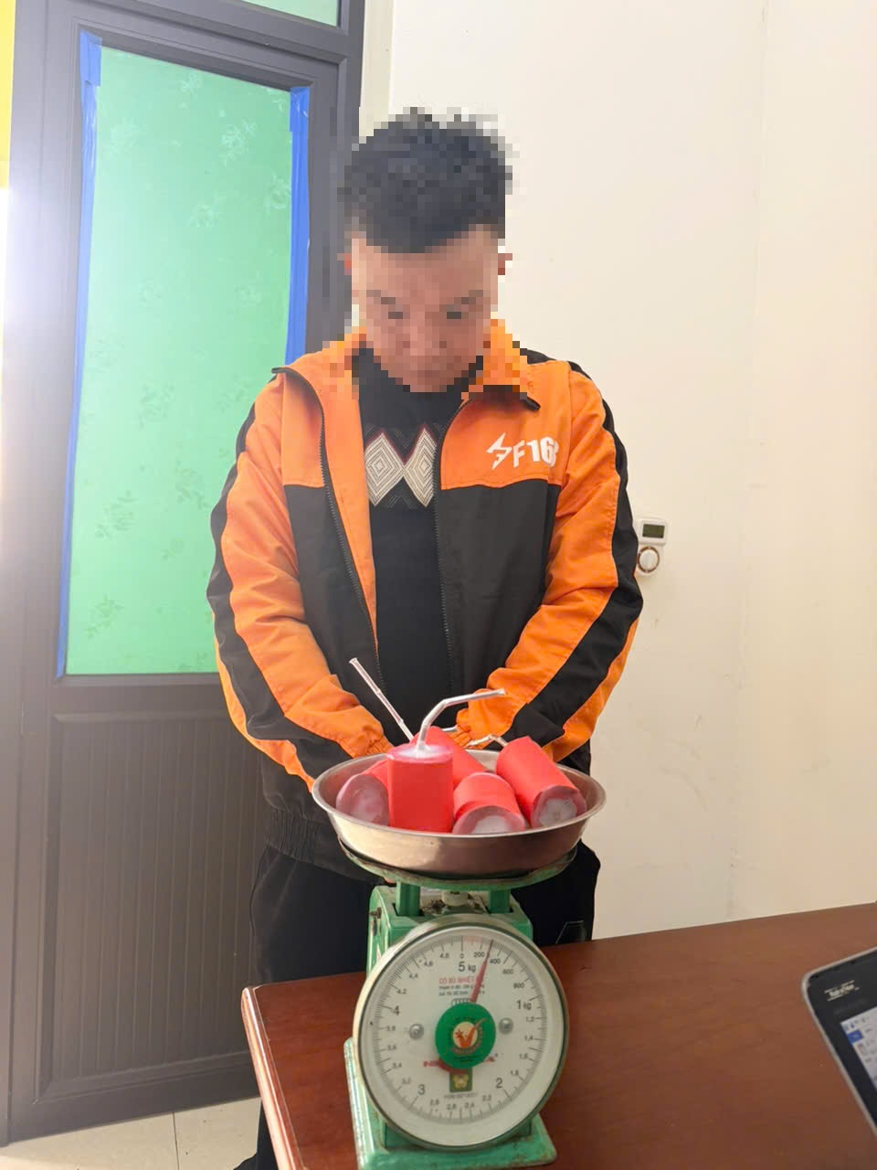 Tang vật thu giữ gồm 05 vật hình trụ tròn, được cuốn bằng giấy màu đỏ, mỗi vật có đường kính khoảng 4,5 cm, chiều cao khoảng 6,5 cm; các đầu đều có dây dẫn màu trắng bạc, dài khoảng 8 cm. Qua cân xác định, tổng trọng lượng của 05 vật là 300 gam. Toàn bộ tang vật đã được niêm phong, quản lý theo đúng quy trình.