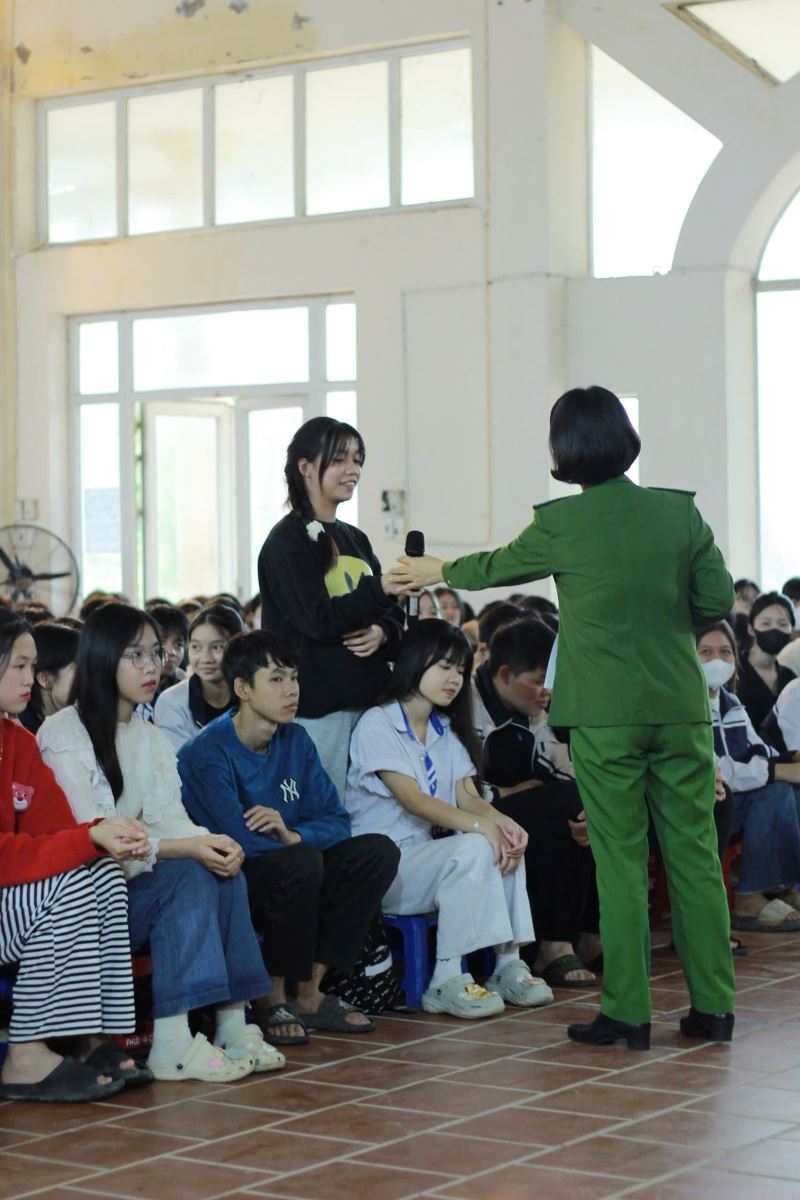 Buổi tuyên truyền tập trung vào các nội dung thiết thực, gần gũi với học sinh như: phòng, chống bạo lực học đường; hành vi vi phạm pháp luật trong lứa tuổi thanh thiếu niên; hậu quả và trách nhiệm pháp lý khi vi phạm. Các cán bộ tuyên truyền đã truyền đạt nội dung bằng hình thức trực quan, dễ hiểu, kết hợp minh họa tình huống thực tế và phần trao đổi, thảo luận trực tiếp. Qua đó, học sinh nắm bắt rõ hơn các quy định pháp luật, nâng cao ý thức tự bảo vệ bản thân và hình thành thói quen tuân thủ pháp luật.