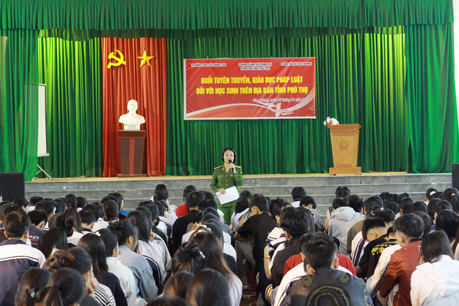 Chiều ngày 07/11/2025, Phòng Cảnh sát hình sự Công an tỉnh Phú Thọ phối hợp với Công an xã Cao Dương tổ chức buổi tuyên truyền, phổ biến pháp luật tại Trường THPT Cù Chính Lan, thu hút hơn 300 học sinh và thầy cô giáo tham dự.