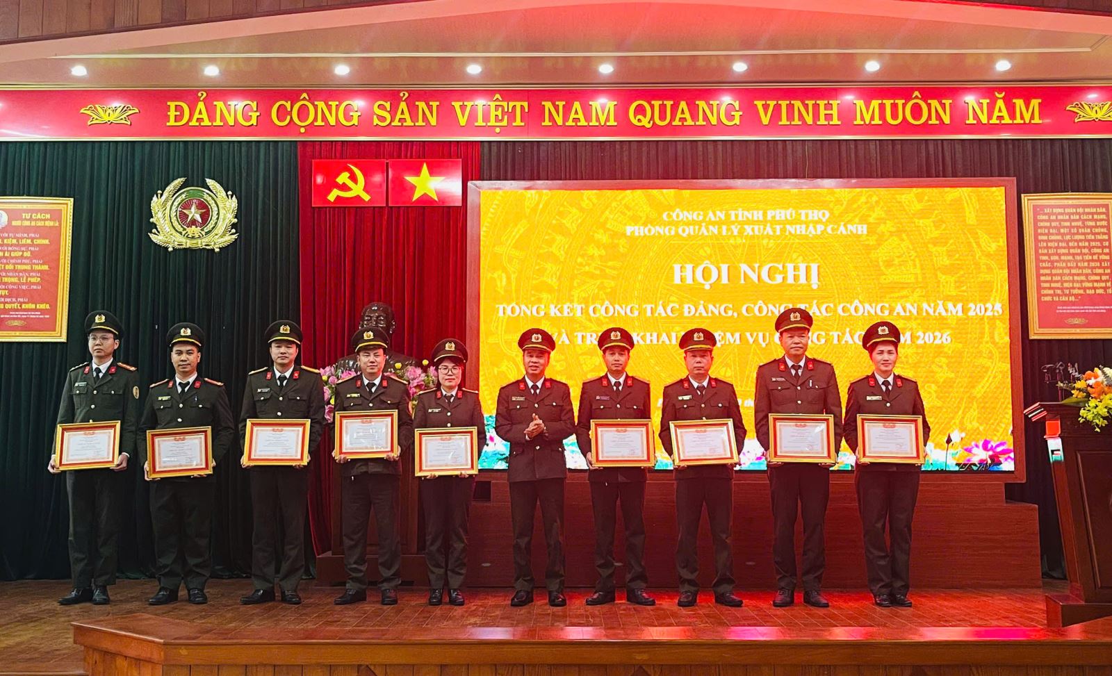 Nhân dịp này, lãnh đạo Công an tỉnh và lãnh đạo Phòng Quản lý xuất nhập cảnh đã trao giấy khen cho các tập thể, cá nhân có thành tích xuất sắc trong phong trào thi đua năm 2025, qua đó động viên cán bộ, chiến sĩ tiếp tục nỗ lực hoàn thành tốt nhiệm vụ được giao trong năm 2026.
