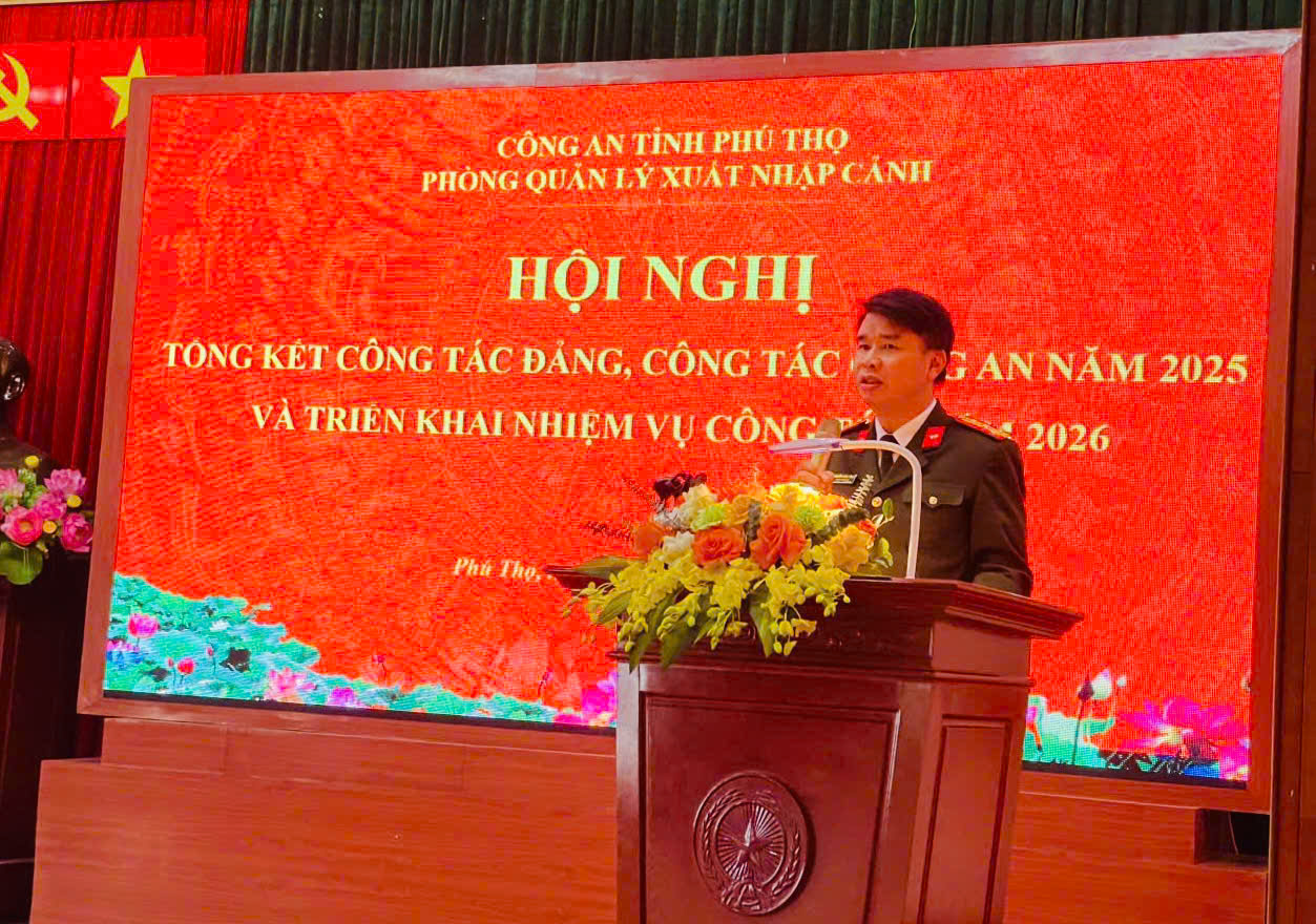 Ngày 30/12/2025, Phòng Quản lý xuất nhập cảnh Công an tỉnh Phú Thọ tổ chức Hội nghị tổng kết công tác Đảng, công tác Công an năm 2025 và triển khai nhiệm vụ công tác năm 2026. Hội nghị nhằm đánh giá toàn diện kết quả các mặt công tác đã đạt được trong năm qua, làm rõ những tồn tại, hạn chế, nguyên nhân, đồng thời xác định phương hướng, nhiệm vụ trọng tâm trong thời gian tới.