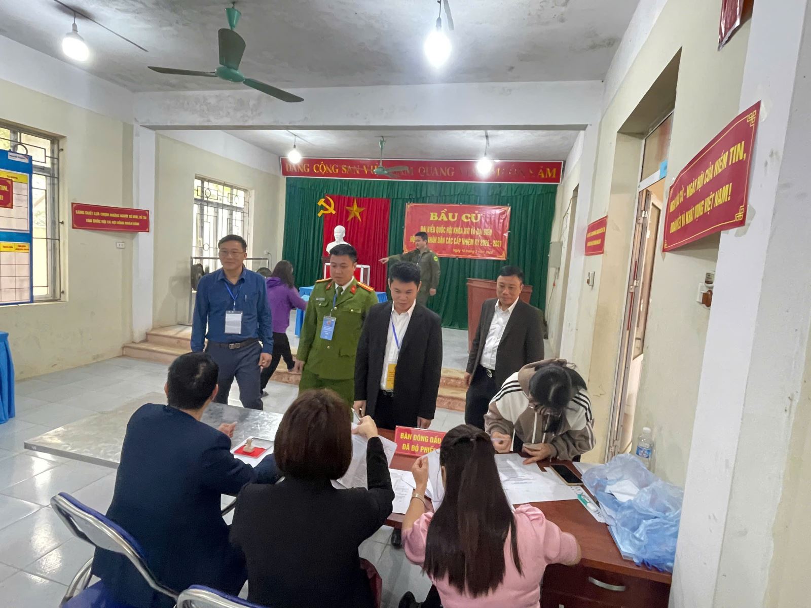 Lãnh đạo Phòng Tham mưu tham gia Đoàn kiểm tra của Công an tỉnh trực tiếp kiểm tra công tác bảo đảm an ninh, trật tự tại các khu vực bầu cử