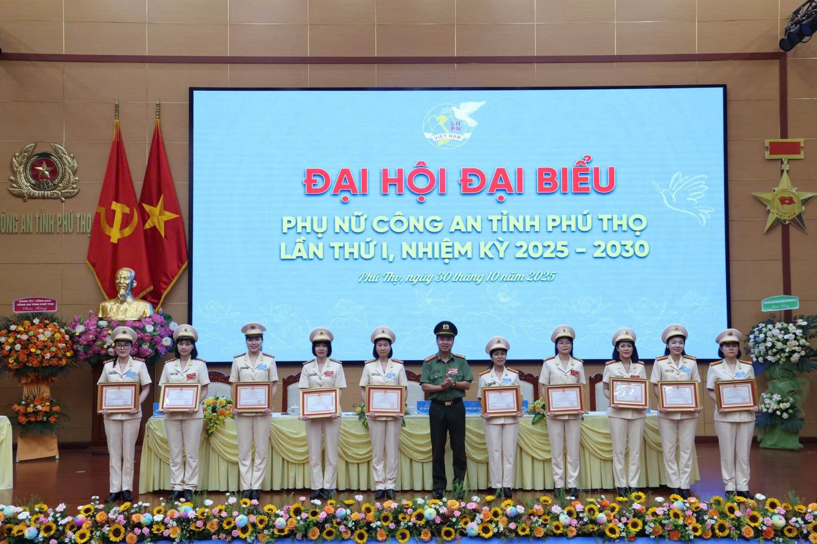 Đồng chí Đại tá Nguyễn Văn Công, Phó Giám đốc Công an tỉnh tặng Giấy khen cho các cá nhân có thành tích tiêu biểu xuất sắc trong thực hiện phong trào thi đua. Kết quả, 8/8 chỉ tiêu thi đua đều đạt và vượt yêu cầu đề ra. Trong giai đoạn 2022 - 2025, Hội Phụ nữ Công an tỉnh Phú Thọ được Trung ương Hội Liên hiệp Phụ nữ Việt Nam tặng 02 Bằng khen; nhiều tập thể, cá nhân được Bộ Công an, Hội Liên hiệp Phụ nữ tỉnh và Giám đốc Công an tỉnh khen thưởng, trong đó có 05 tập thể và 20 cá nhân tiêu biểu được tặng Giấy khen vì có thành tích tiêu biểu xuất sắc trong thực hiện phong trào.
