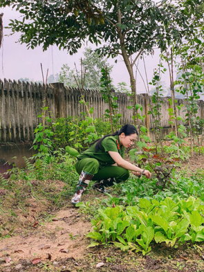 Những ngày nghỉ cuối tuần, thay vì tham gia các hoạt động giải trí, các chị em phụ nữ trong đơn vị tập trung cải tạo khuôn viên, trồng các luống rau xanh và chăm sóc cây ăn quả. Sau hơn một tháng triển khai, vườn rau của Chi hội Phụ nữ đã trở nên phong phú với nhiều loại rau, củ, quả như rau cải xanh, xà lách, cải thảo, rau thơm, đỗ, su hào, cùng các giàn hoa quả su su.