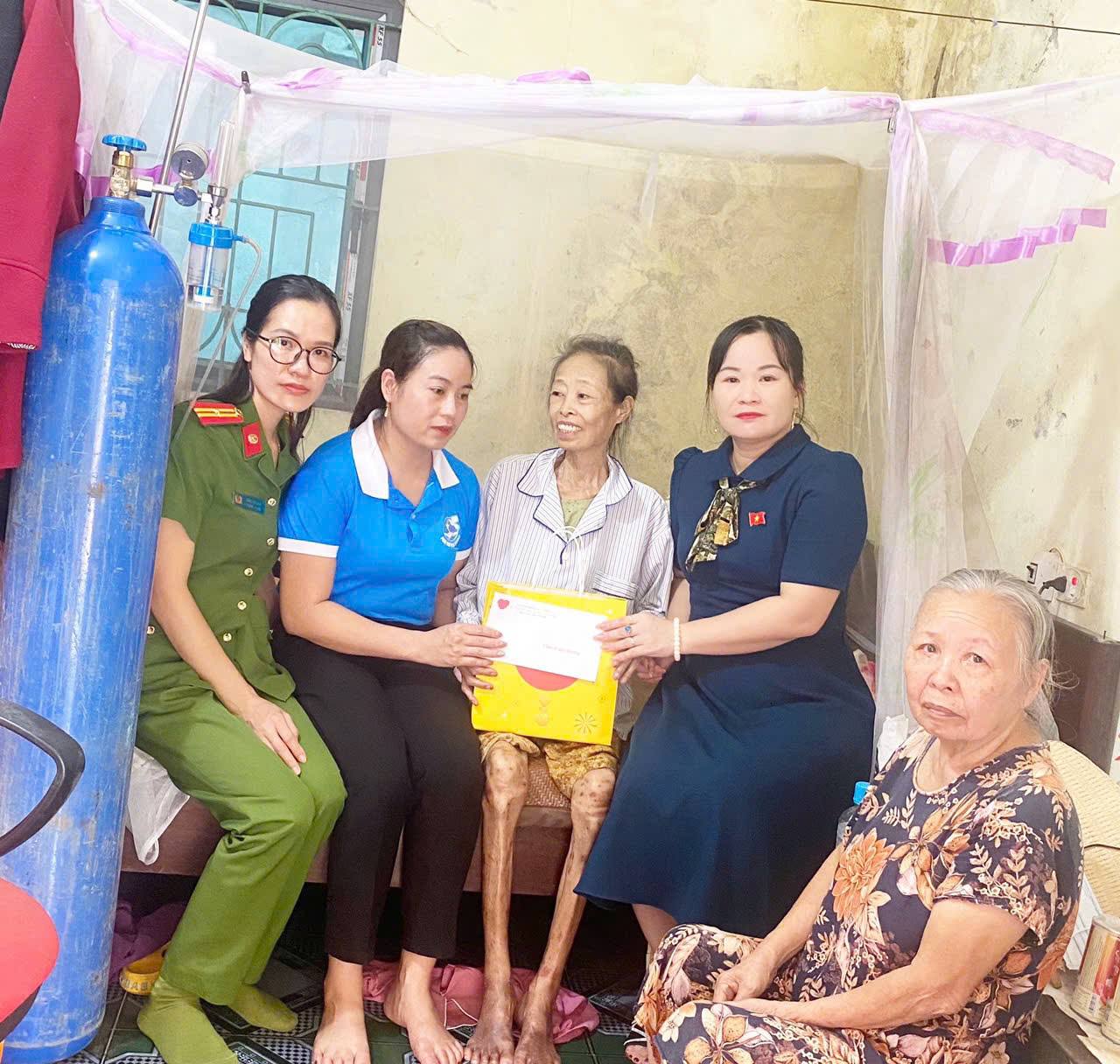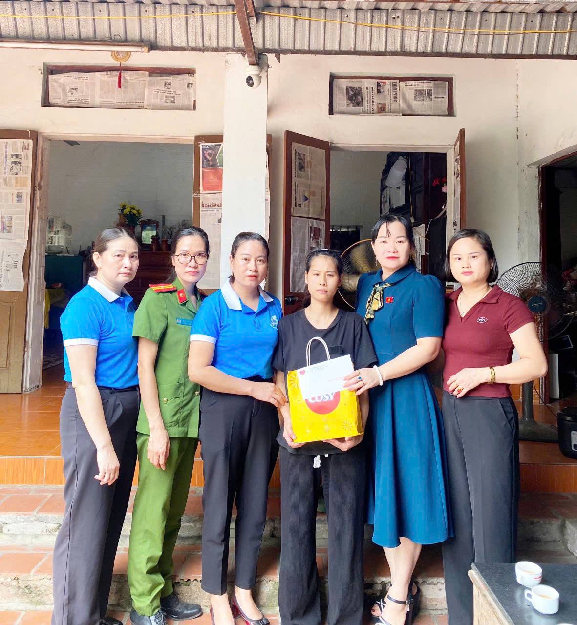 Hình ảnh Phụ nữ CAX Vĩnh Tường thăm hỏi, động viên các chị em có hoàn cảnh khó khăn Một điểm sáng đáng ghi nhận là tinh thần “lá lành đùm lá rách” của các nữ cán bộ công an. Các chị thường xuyên quan tâm, thăm hỏi, động viên hội viên phụ nữ có hoàn cảnh khó khăn, phụ nữ đơn thân, phụ nữ có chồng công tác xa hoặc gặp rủi ro trong cuộc sống. Nhiều phần quà thiết thực, những việc làm nghĩa tình đã được gửi đến tận tay các chị em, thể hiện tấm lòng nhân ái và sự sẻ chia của người chiến sĩ công an đối với cộng đồng.