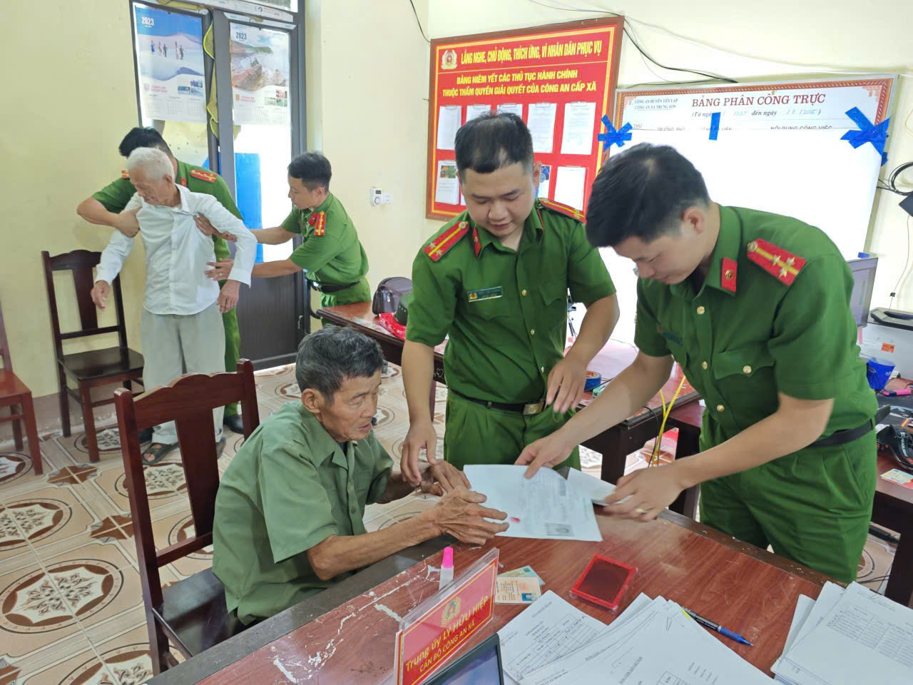 Lực lượng Công an xã hướng dẫn người dân làm định danh điện tử mức độ 2