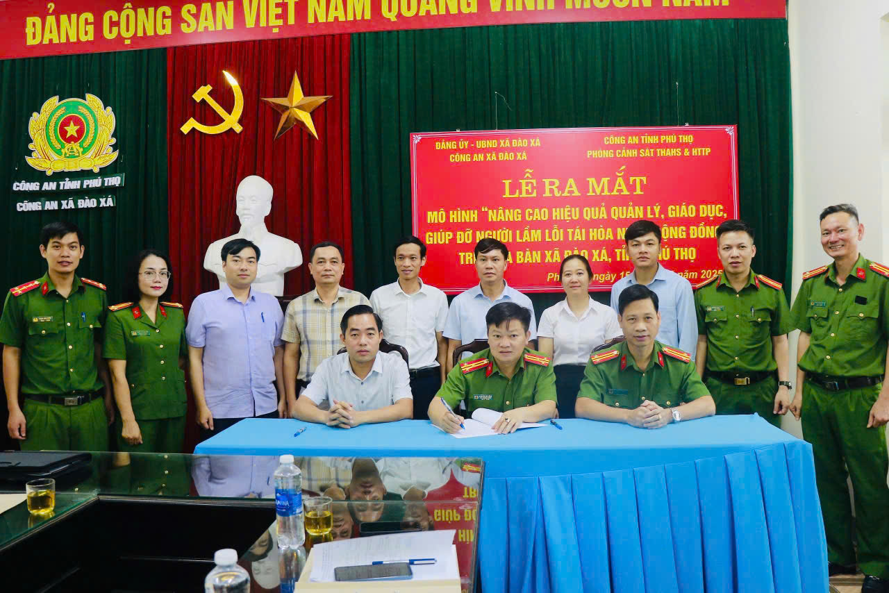 Thực hiện chủ trương của Bộ Công an, Công an tỉnh về tăng cường các biện pháp hỗ trợ người chấp hành xong án phạt tù tái hòa nhập cộng đồng, sáng ngày 15/10/2025, Phòng Cảnh sát Thi hành án hình sự và Hỗ trợ tư pháp (PC10) Công an tỉnh Phú Thọ tổ chức Lễ ra mắt mô hình “Nâng cao hiệu quả quản lý, giáo dục, giúp đỡ người lầm lỗi tái hòa nhập cộng đồng” tại xã Đào Xá.