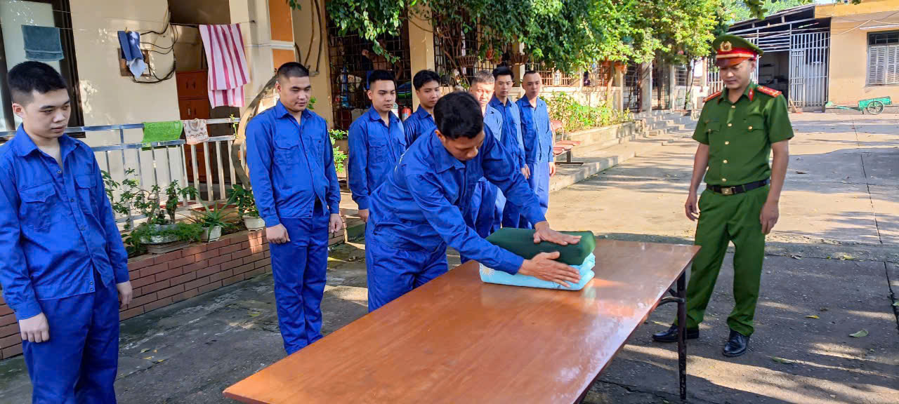 Song song với đó, công tác rèn luyện nội vụ, vệ sinh cá nhân như gấp chăn màn, sắp xếp giường chiếu, đồ dùng cá nhân cũng được thực hiện nghiêm túc hằng ngày. Các cán bộ phụ trách buồng trực tiếp hướng dẫn, kiểm tra và giúp học viên hoàn thiện kỹ năng sống cơ bản, điều mà nhiều người trước đây chưa từng được rèn luyện.