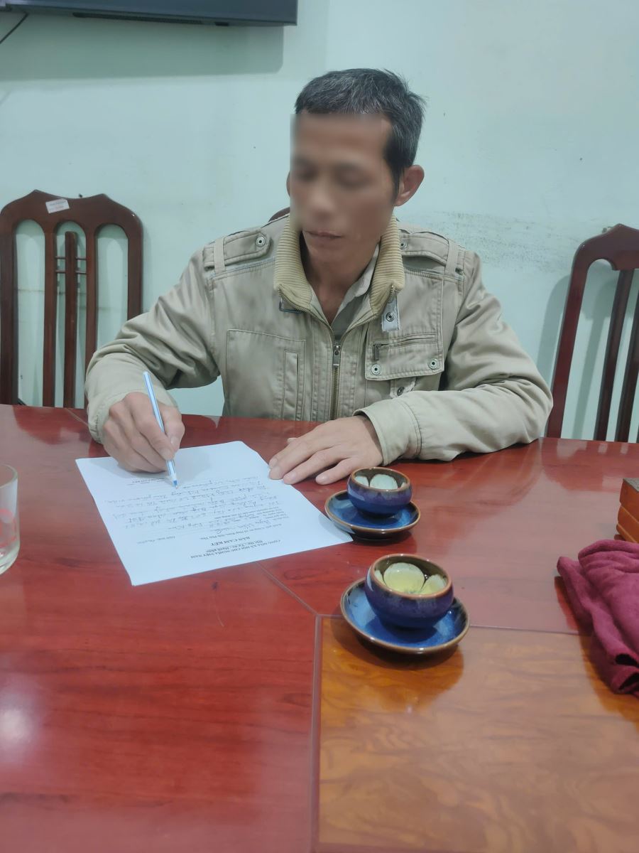 Ông Bùi Văn N viết bản cam kết tại cơ quan Công an