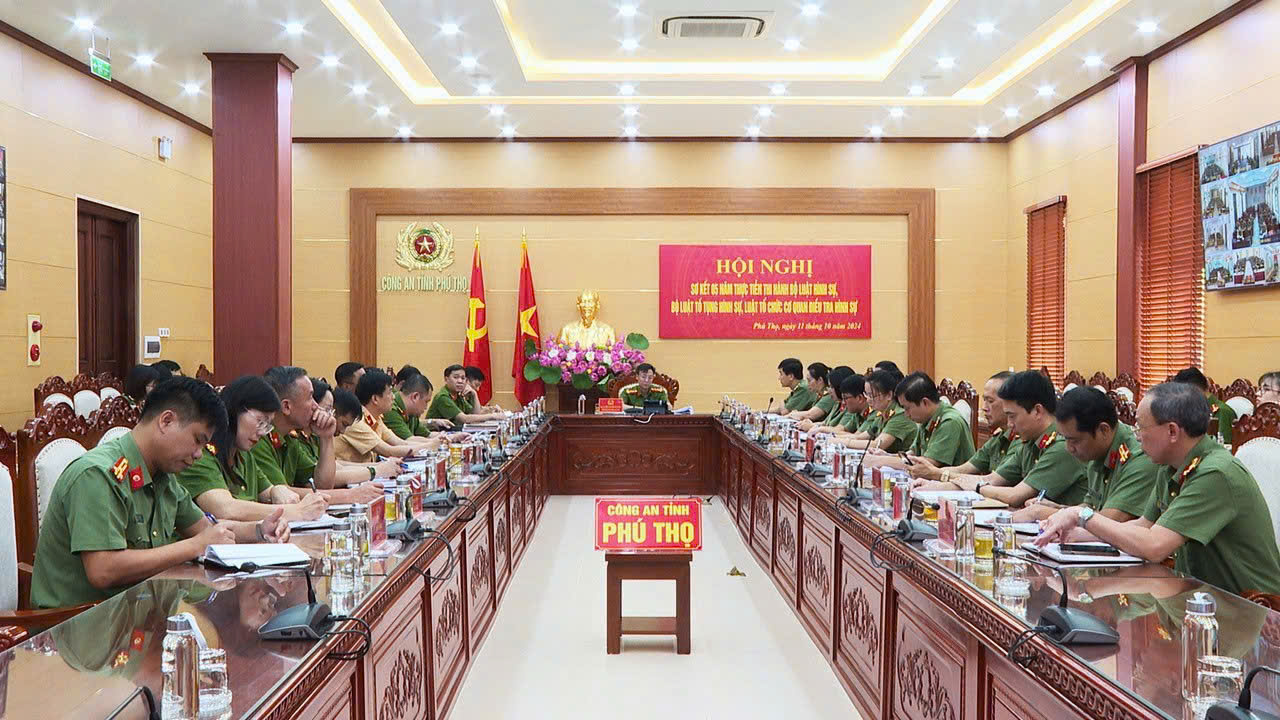 Chiều 11/10, tại Hà Nội, Bộ Công an đã tổ chức Hội nghị trực tuyến sơ kết 5 năm thực tiễn thi hành Bộ luật Hình sự, Bộ luật Tố tụng hình sự và Luật Tổ chức cơ quan điều tra hình sự. Thượng tướng Lương Tam Quang, Ủy viên Bộ Chính trị, Bộ trưởng Bộ Công an chủ trì hội nghị. Hội nghị được tổ chức theo hình thức trực tiếp kết hợp trực tuyến đến điểm cầu Công an các đơn vị, địa phương. Tại điểm cầu Công an tỉnh Phú Thọ, Đại tá Hoàng Nguyễn Phi Khanh, Phó Giám đốc Công an tỉnh chủ trì hội nghị.
