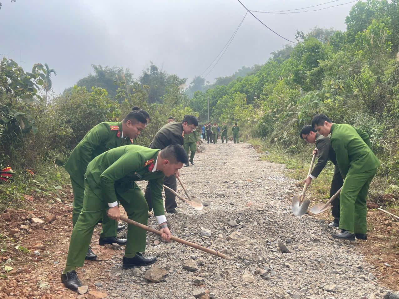 Bên cạnh nhiệm vụ chuyên môn, đơn vị đã tổ chức nhiều hoạt động hướng về cộng đồng đầy ý nghĩa. Điển hình là việc phối hợp với các lực lượng và chính quyền địa phương tổ chức cho đoàn viên thanh niên tham gia hỗ trợ nhân dân xã Mường Bi xây dựng đường giao thông nông thôn. Đây là hoạt động thiết thực nhằm chung tay cải thiện hạ tầng cơ sở, thúc đẩy phát triển kinh tế - xã hội tại địa phương, đồng thời góp phần lan tỏa hình ảnh đẹp về người chiến sĩ Công an nhân dân trong lòng nhân dân.