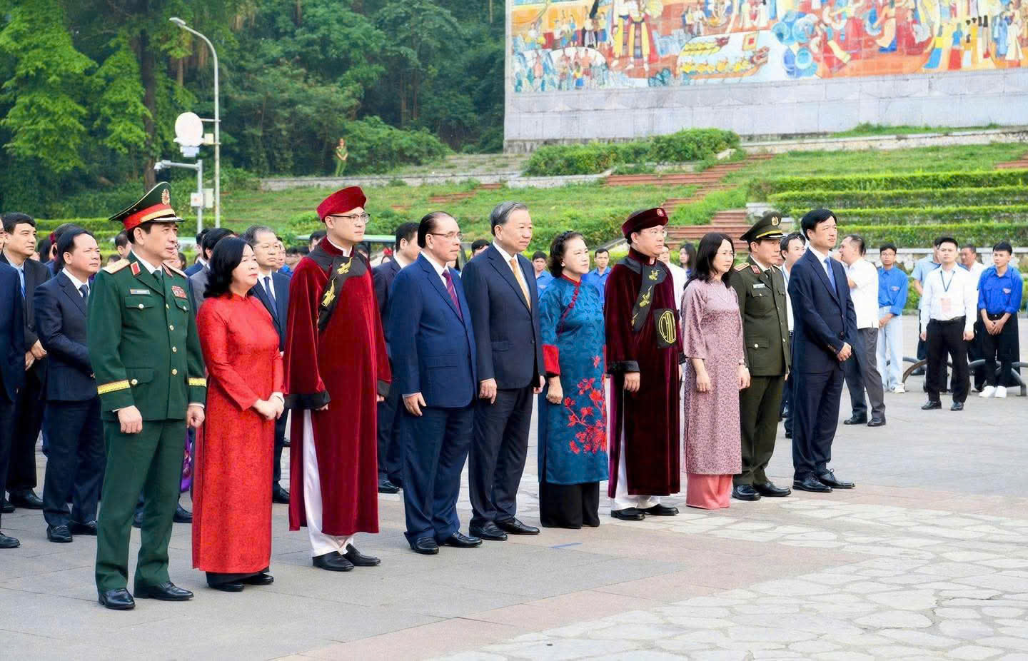 Cùng dự còn có nguyên Tổng Bí thư Nông Đức Mạnh; nguyên Chủ tịch Quốc hội Nguyễn Thị Kim Ngân; Các đồng chí Ủy viên Bộ Chính trị: Chủ tịch Ủy ban Trung ương MTTQ Việt Nam Bùi Thị Minh Hoài; Trưởng ban Tổ chức Trung ương Nguyễn Duy Ngọc; Chủ nhiệm Ủy ban kiểm tra Trung ương Trần Sỹ Thanh; Trưởng ban Tuyên giáo và Dân vận Trung ương Trịnh Văn Quyết; Trưởng ban chính sách, chiến lược Trung ương Nguyễn Thanh Nghị; Đại tướng Phan Văn Giang, Phó Thủ tướng, Bộ trưởng Quốc phòng; Đại tướng Lương Tam Quang, Bộ trưởng Công an; đồng chí Lê Hoài Trung, Bộ trưởng Bộ ngoại giao cùng lãnh đạo các ban, bộ ngành TW, lãnh đạo tỉnh Phú Thọ và đông đảo bà con Nhân dân.