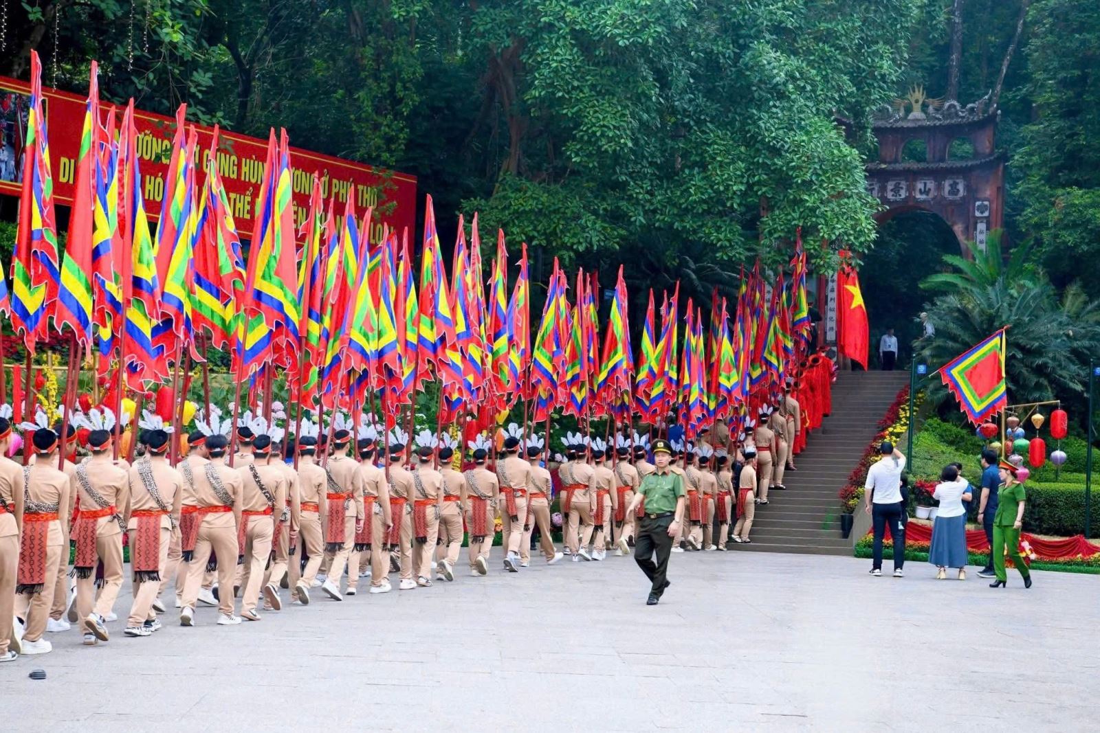 Để đảm bảo an ninh, an toàn cho sự kiện đặc biệt quan trọng này, Công an tỉnh Phú Thọ đã chủ động xây dựng và triển khai các phương án khoa học, bài bản, bảo vệ tuyệt đối an toàn Đoàn các đồng chí Lãnh đạo Đảng, Nhà nước cùng đồng bào và du khách thập phương về Đền Hùng trong ngày Giỗ Tổ.