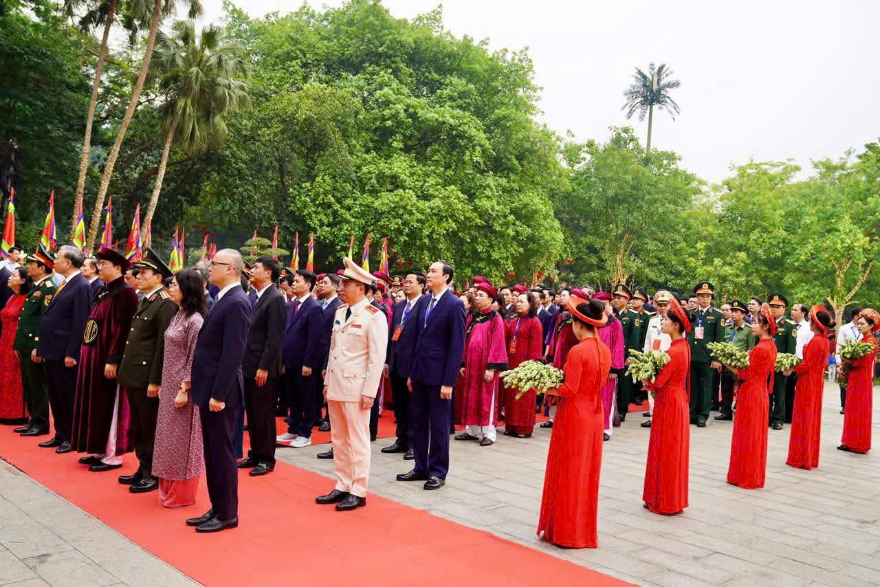 Tại Điện Kính Thiên trên đỉnh núi Nghĩa Lĩnh, với tấm lòng thành kính tri ân công đức tổ tiên, thể hiện đạo lý "uống nước nhớ nguồn" của dân tộc Việt Nam, Tổng Bí thư, Chủ tịch nước Tô Lâm cùng các đồng chí lãnh đạo Đảng, Nhà nước vào Thượng cung dâng hương, hoa bày tỏ lòng biết ơn sâu sắc các bậc tiền nhân đã có công dựng nước, giữ nước để con cháu hôm nay nối tiếp truyền thống, xây dựng đất nước Việt Nam giàu đẹp, văn minh tiến bước vào kỷ nguyên mới - kỷ nguyên vươn mình của dân tộc Việt Nam.