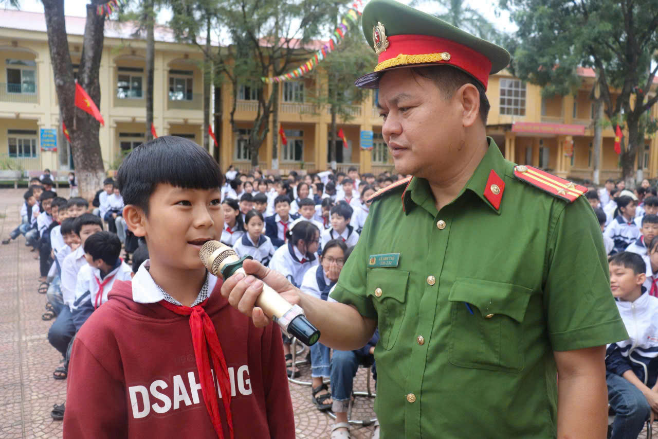 Tại các buổi tuyên truyền, gần 3.000 học sinh, 185 cán bộ, giáo viên cùng 90 đại diện phụ huynh đã được cán bộ Công an xã truyền đạt nhiều nội dung quan trọng như: các quy định của Luật Giao thông đường bộ; quy định bắt buộc đội mũ bảo hiểm đạt chuẩn khi điều khiển xe đạp điện; nhận diện và phòng tránh các hành vi vi phạm giao thông thường gặp ở học sinh; tìm hiểu các loại biển báo cơ bản và phân tích một số vụ tai nạn giao thông điển hình để rút ra bài học cảnh giác, phòng ngừa rủi ro.