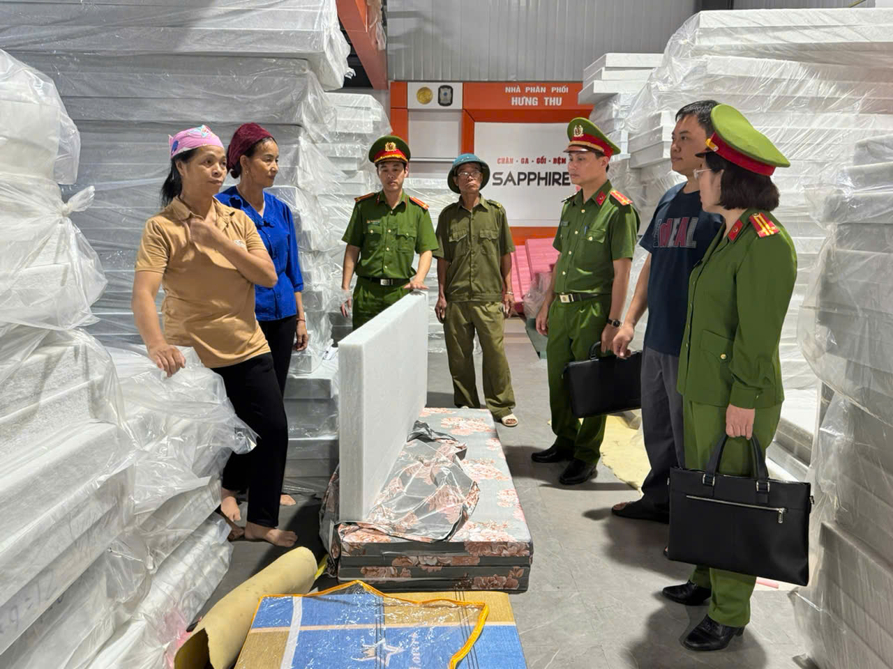 Trung tá Lê Quỳnh Lâm, Phó trưởng Công an xã Tam Hồng, cho biết: “Trên địa bàn xã hiện có hơn 80 hộ kinh doanh, sản xuất chăn ga, gối đệm liên quan đến bông, vải, sợi —tập trung chủ yếu tại thôn Gia. Đây là ngành nghề phát triển từ nghề bật bông truyền thống của địa phương. Do đặc thù sản xuất sử dụng nhiều nguyên liệu dễ cháy, nguy cơ cháy nổ luôn tiềm ẩn, đe dọa an toàn tính mạng, tài sản của người dân và ảnh hưởng đến an ninh trật tự trên địa bàn.”