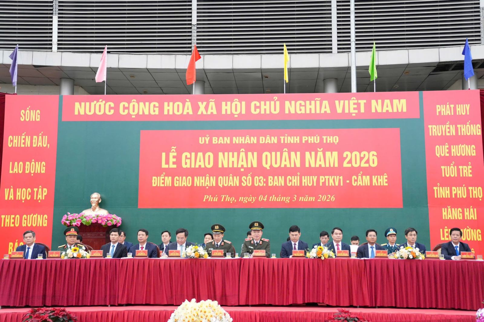 Sáng 04/3/2026, tại sân vận động xã Lâm Thao (điểm giao, nhận quân số 03 – Ban Chỉ huy Phòng thủ khu vực 1, Cẩm Khê), tỉnh Phú Thọ đã long trọng tổ chức Lễ giao, nhận quân năm 2026. Dự và chỉ đạo buổi lễ có đồng chí Thượng tướng Lê Văn Tuyến, Ủy viên Trung ương Đảng, Thứ trưởng Bộ Công an; đồng chí Trần Duy Đông, Ủy viên dự khuyết Ban Chấp hành Trung ương Đảng, Phó Bí thư Tỉnh ủy, Chủ tịch UBND tỉnh, Chủ tịch Hội đồng Nghĩa vụ quân sự tỉnh; đồng chí Thiếu tướng Nguyễn Minh Tuấn, Ủy viên Ban Thường vụ Tỉnh ủy, Bí thư Đảng ủy, Giám đốc Công an tỉnh; các đồng chí lãnh đạo Tỉnh ủy, HĐND, UBND tỉnh; đại diện các sở, ban, ngành, lực lượng vũ trang và đông đảo Nhân dân.