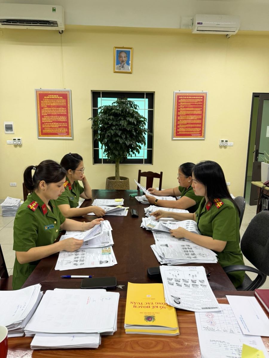 Thiếu tá Vũ Thị Như Trang, Đội trưởng Đội Tàng thư CCCD, Phòng Cảnh sát QLHC về TTXH, Công an Phú Thọ chia sẻ: Hiện Đội Tàng thư căn cước công dân gồm 7 đồng chí đa phần là nữ. Đảng ủy, lãnh đạo đơn vị cũng như tập thể đội thường xuyên thăm hỏi, động viên, chia sẻ tạo động lực để cán bộ, chiến sĩ, nhất là đối với chị em trong đơn vị, khắc phục khó khăn, cùng toàn đơn vị hoàn thành tốt nhiệm vụ chính trị được giao. Chính vì vậy, mặc dù thường xuyên tăng ca trực, giải quyết công việc phục vụ cho công tác, chiến đấu, làm việc thứ bảy, chủ nhật để kịp tiến độ chỉ tiêu nhiệm vụ lãnh đạo giao, nhưng các chị luôn sắp xếp thời gian dành cho gia đình và công việc phù hợp, hoàn thành có hiệu quả tiến độ công việc được phân công. Có khi phục vụ gấp cho chuyên án lớn, xác minh, truy bắt đối tượng phạm tội, đối tượng truy nã, bất kể thời gian nào, có yêu cầu là tất cả thành viên trong đội luôn sẵn sàng phục vụ nhanh nhất. Đội đã cung cấp thông tin cho Cơ quan An ninh điều tra Công an tỉnh Phú Thọ để truy bắt thành công đổi tượng truy nã đặc biệt nguy hiểm bỏ trốn trên 30 năm, mặc dù đối tượng đã thay đổi thông tin cá nhân, bỏ trốn qua nhiều nơi và đang lẩn trốn tại tỉnh Đắt Lắk nhưng với tinh thần quyết tâm cao, cán bộ Đội tàng thư căn cước đã truy cứu ra thông tin của đối tượng; hay như cung cấp thông tin cho Cơ quan CSĐT Công an thành phố Việt Trì xác định danh tính của 01 tử thi là nữ giới chưa rõ danh tính phát hiện trên mặt hồ công viên Văn Lang thuộc địa phận phường Tiên Cát - TP. Việt Trì. Đơn vị đã khẩn trương phân loại vân tay 10 ngón, tập trung cán bộ có kinh nghiệm tiến hành tra cứu, xác minh qua tàng thư thủ công, nhanh chóng xác định danh tính nạn nhân.