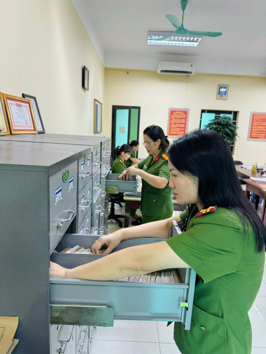 Chia sẻ với chúng tôi, Trung tá Nguyễn Thị Bích Thuỷ, Phó đội trưởng Đội Tàng thư CCCD, Phòng Cảnh sát QLHC về TTXH cho biết: “Để việc tra cứu thuận lợi, dễ dàng, chính xác, cán bộ, chiến sĩ Đội Tàng thư căn cước công dân tiến hành phân loại, sắp xếp một cách khoa học, theo từng trường hợp thông tin, chia tách họ tên, năm sinh theo đúng hướng dẫn của Bộ Công an để phục vụ công tác tra cứu, lưu trữ lâu dài. Với yêu cầu công việc phải kịp thời, thông tin chính xác, do vậy, bản thân mỗi cán bộ, chiến sĩ trong Đội luôn nêu cao tinh thần trách nhiệm, làm việc với tinh thần tập trung cao độ, tỉ mỉ, thận trọng, không để xảy ra bất kỳ sai sót gì để không ảnh hưởng đến công tác chung của toàn lực lượng”.