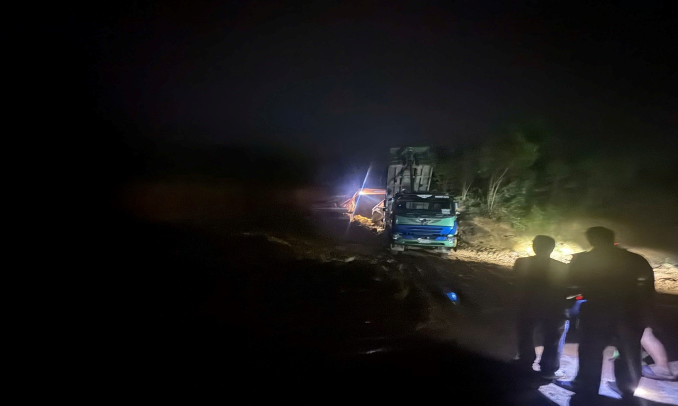 Ảnh hiện trường các đối tượng khai thác, vận chuyển khoáng sản đêm ngày 15/8/2025 tại