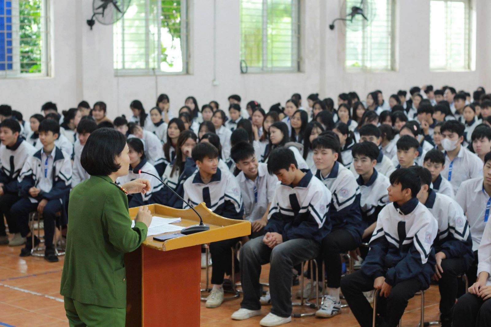 Tại buổi tuyên truyền, cán bộ Phòng Cảnh sát hình sự đã cung cấp nhiều thông tin thực tiễn về tình hình tội phạm, vi phạm pháp luật trong lứa tuổi thanh thiếu niên trên địa bàn tỉnh, đặc biệt là các hành vi tụ tập đánh nhau, gây rối trật tự công cộng, sử dụng mạng xã hội để kích động bạo lực, tham gia các nhóm kín có dấu hiệu vi phạm pháp luật. Qua đó, giúp học sinh nhận thức rõ hơn về những nguy cơ, hệ lụy từ việc thiếu hiểu biết và vi phạm pháp luật.