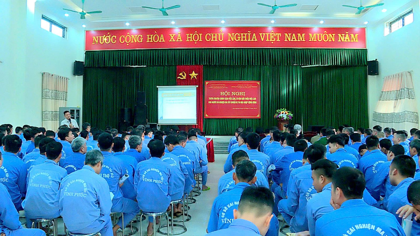 Ngày 14/12/2025, Cơ sở cai nghiện ma túy số 2 phối hợp với Trung tâm Dịch vụ việc làm Vĩnh Phúc tổ chức hội nghị tuyên truyền chính sách việc làm, tư vấn và giới thiệu việc làm cho học viên đang cai nghiện, chuẩn bị tái hòa nhập cộng đồng.