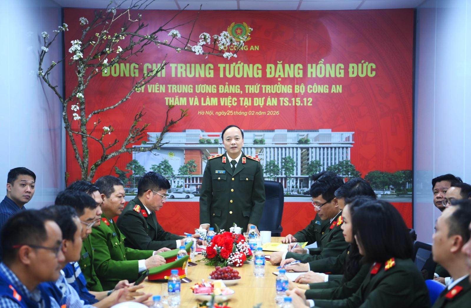 Chiều 25/02/2026, Trung tướng Đặng Hồng Đức, Ủy viên Trung ương Đảng, Thứ trưởng Bộ Công an đã đến thăm và kiểm tra tiến độ triển khai thực hiện Dự án TS.15.12 (Dự án trụ sở 15 Trần Bình Trọng) và Dự án xây dựng nhà ở cho lực lượng vũ trang Công an nhân dân tại ô đất G1 - G3, xã Vĩnh Thanh, thành phố Hà Nội.