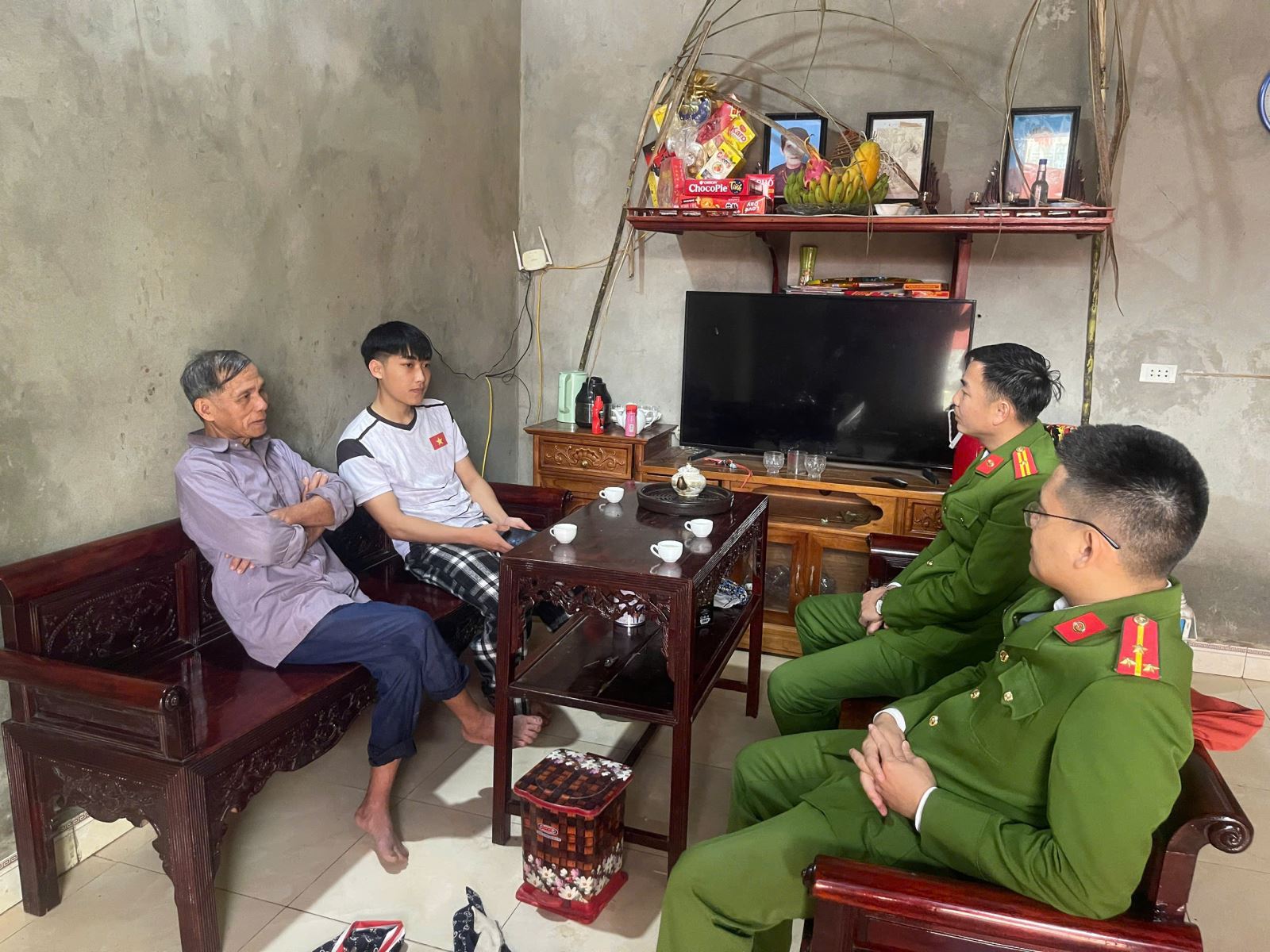 Hình ảnh hoạt động thăm hỏi Tại các buổi gặp gỡ, đại diện lãnh đạo Công an xã đã ân cần thăm hỏi sức khỏe, hoàn cảnh gia đình, tâm tư, nguyện vọng của các công dân trước ngày lên đường nhận nhiệm vụ. Đồng thời, động viên các thanh niên giữ vững bản lĩnh chính trị, phát huy truyền thống quê hương, chấp hành nghiêm kỷ luật, quy định của đơn vị; tích cực học tập, rèn luyện, nâng cao trình độ chuyên môn, nghiệp vụ, phấn đấu hoàn thành tốt nhiệm vụ được giao trong thời gian phục vụ tại ngũ.