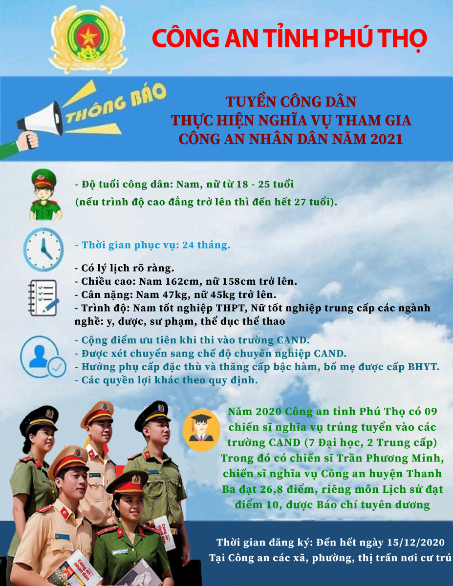 Thông báo tuyển chọn công dân thực hiện nghĩa vụ tham gia Công an nhân dân năm 2021 (18/11/2020)