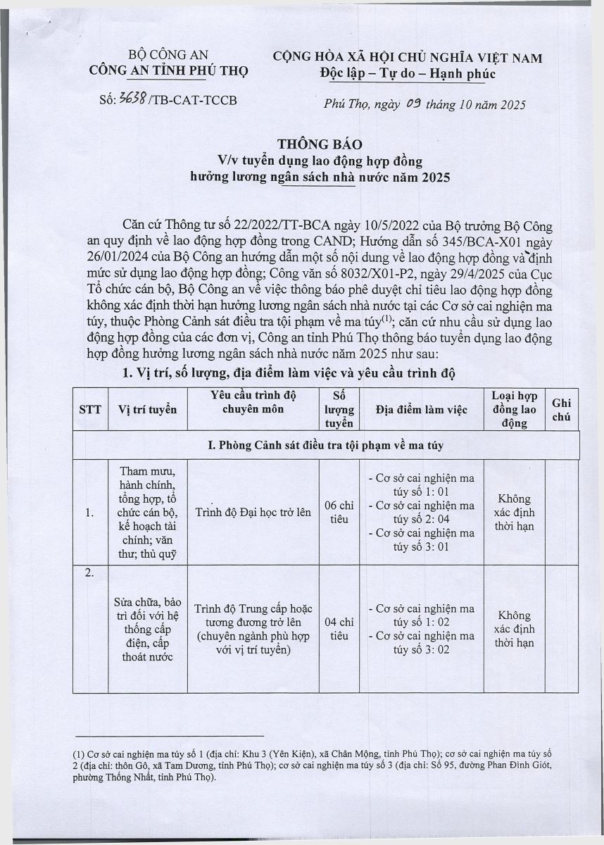 Thông báo tuyển dụng lao động hợp đồng hưởng lương ngân sách nhà nước năm 2025