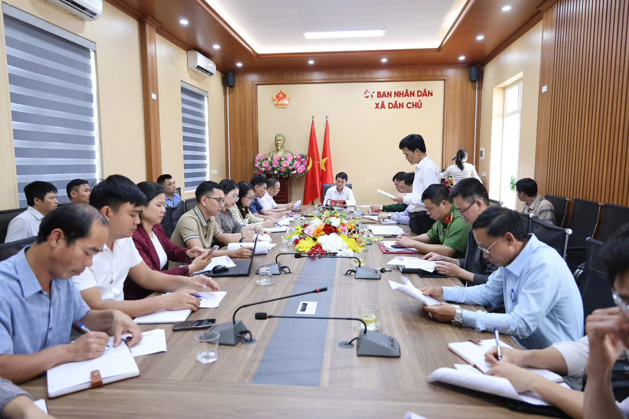 Nhằm kịp thời tháo gỡ khó khăn, bảo đảm quá trình thi công diễn ra an toàn, đúng tiến độ, chiều ngày 27/3/2026, tại trụ sở UBND xã Dân Chủ, hội nghị đã được tổ chức với sự tham gia của đại diện Ban Quản lý dự án các công trình điện miền Bắc, Chi nhánh Trung tâm Phát triển quỹ đất khu vực Phù Ninh cùng các phòng, cơ quan chuyên môn thuộc Đảng ủy, UBND, Ủy ban MTTQ xã và Công an xã Dân Chủ.
