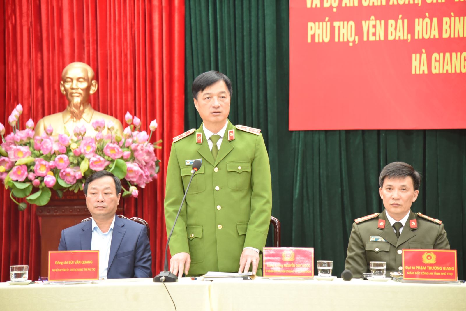 Sáng 22/3, tại Phú Thọ, đoàn công tác Bộ Công an do Trung tướng Nguyễn Duy Ngọc, Ủy viên BCH Trung ương Đảng, Thứ trưởng Bộ Công an làm Trưởng đoàn, đến kiểm tra tiến độ thực hiện dự án xây dựng cơ sở dữ liệu quốc gia về dân cư và dự án sản xuất, cấp và quản lý căn cước công dân đối với 12 tỉnh: Phú Thọ, Yên Bái, Hòa Bình, Sơn La, Điện Biên, Lai Châu, Tuyên Quang, Hà Giang, Cao Bằng, Lào Cai, Thái Nguyên, Bắc Kạn. Dự buổi kiểm tra có Đồng chí Bùi Văn Quang, Phó Bí thư tỉnh ủy, Chủ tịch UBND tỉnh Phú Thọ.