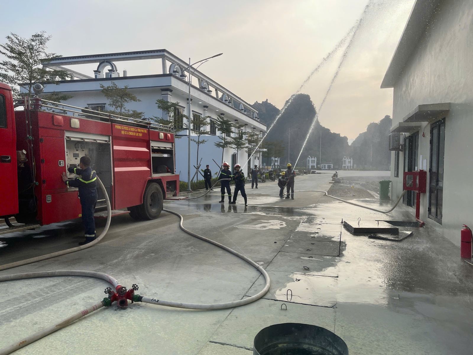 Sau khi nhận được tin báo, Phòng Cảnh sát PCCC và CNCH đã điều động 01 xe chỉ huy, 02 xe chữa cháy cùng 20 cán bộ, chiến sĩ Đội Chữa cháy và CNCH khu vực Lạc Thủy nhanh chóng đến hiện trường. Tại đây, lực lượng Cảnh sát PCCC và CNCH phối hợp chặt chẽ với lực lượng PCCC cơ sở triển khai các biện pháp chữa cháy và tìm kiếm người bị nạn theo tình huống giả định. Sau khoảng 10 phút, đám cháy được khống chế và dập tắt hoàn toàn, bảo đảm an toàn cho người và hạn chế thiệt hại về tài sản.