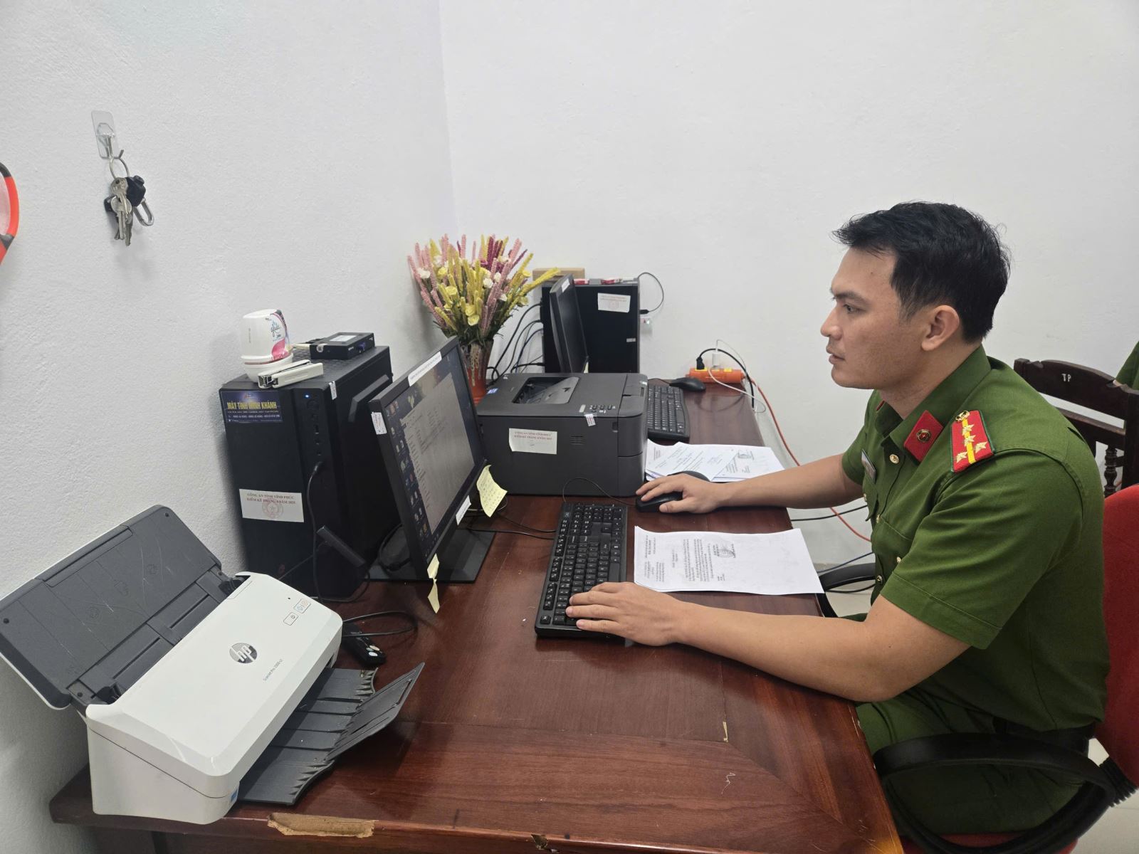 Cán bộ Tham mưu Công an xã Sông Lô nghiên cứu, triển khai công việc