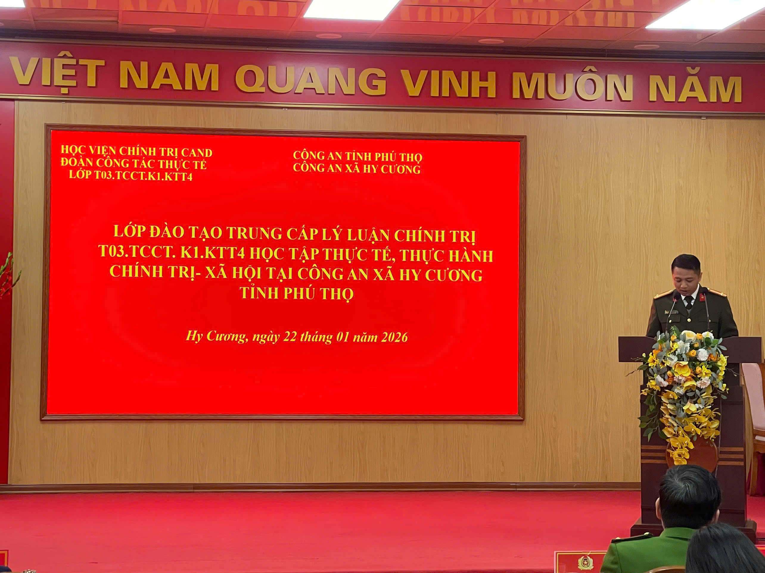 Tổ chức học tập thực tế, thực hành chính trị - xã hội giữa Công an xã Hy Cương và lớp trung cấp lý luận chính trị Học viện Chính trị CAND (26/01/2026)