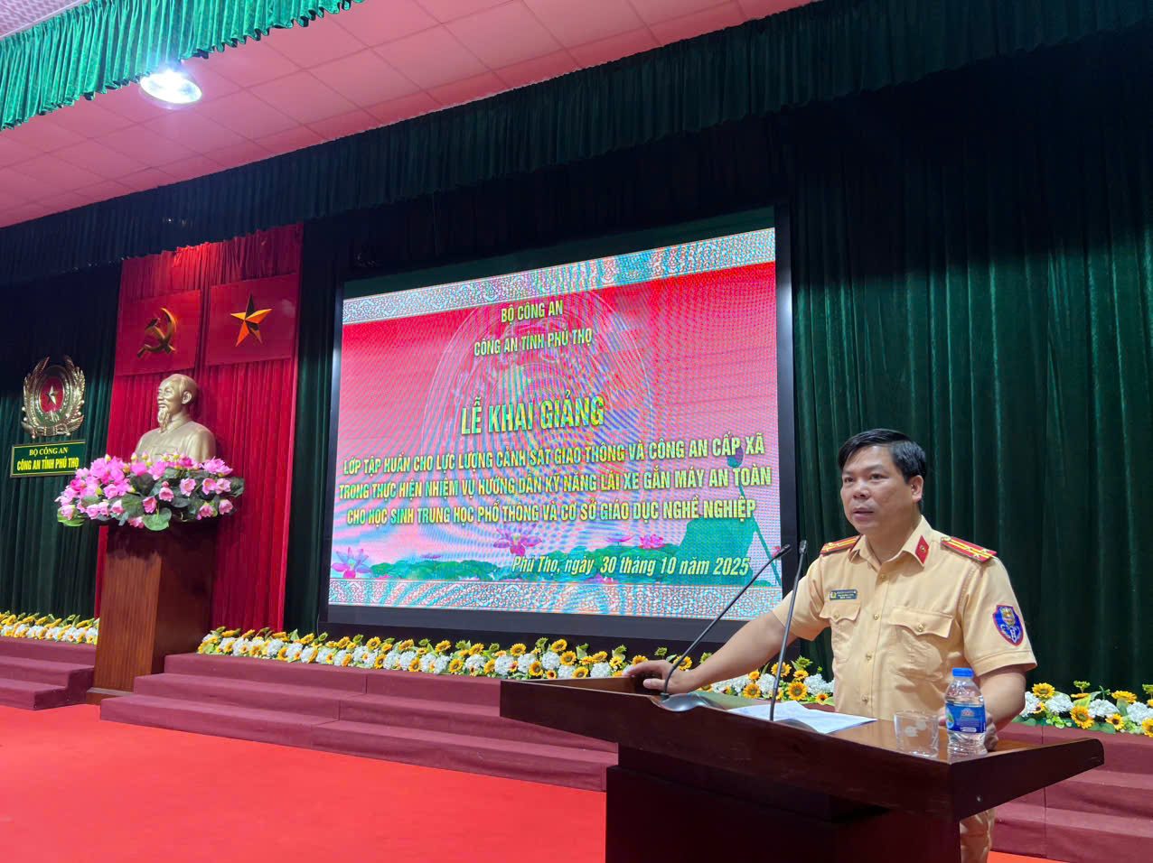 Trong tháng 10 năm 2025, Công an tỉnh Phú Thọ đã tổ chức tập huấn cho lực lượng Cảnh sát giao thông và Công an cấp xã trong việc thực hiện nhiệm vụ hướng dẫn kỹ năng lái xe gắn máy an toàn cho học sinh Trung học phổ thông và cơ sở giáo dục nghề nghiệp; Từ ngày 16/10/2025 đến ngày 31/10/2025, Phòng Tổ chức cán bộ Công an tỉnh đã phối hợp Phòng Cảnh sát Giao thông và các đơn vị chức năng tổ chức 02 lớp tập huấn cho 152 đồng chí là cán bộ chiến sĩ Công an tỉnh, mỗi lớp tập huấn được tổ chức trong 1,5 ngày.